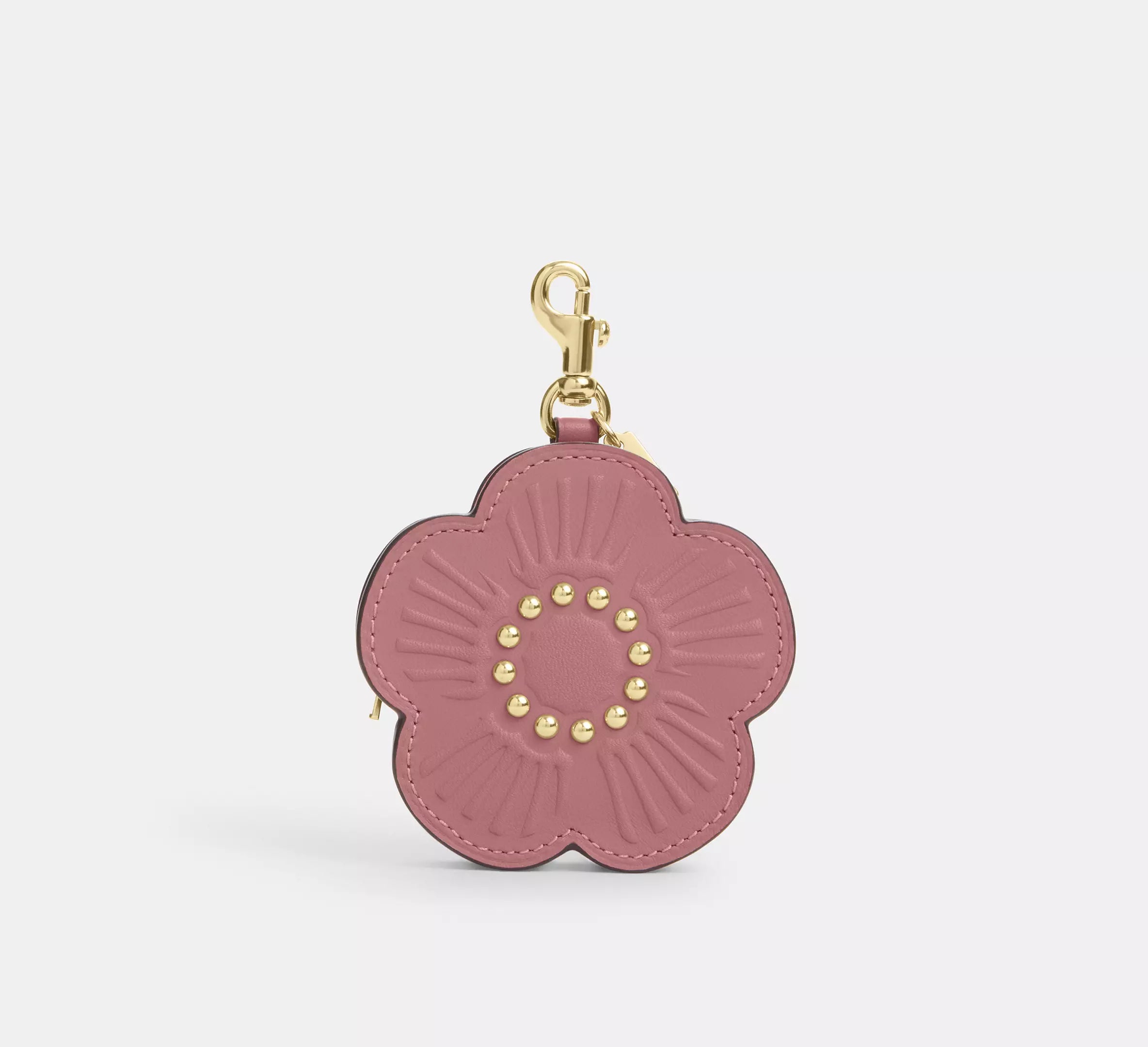 Coach Tea Rose Bag Charm  -  Gold/Peony