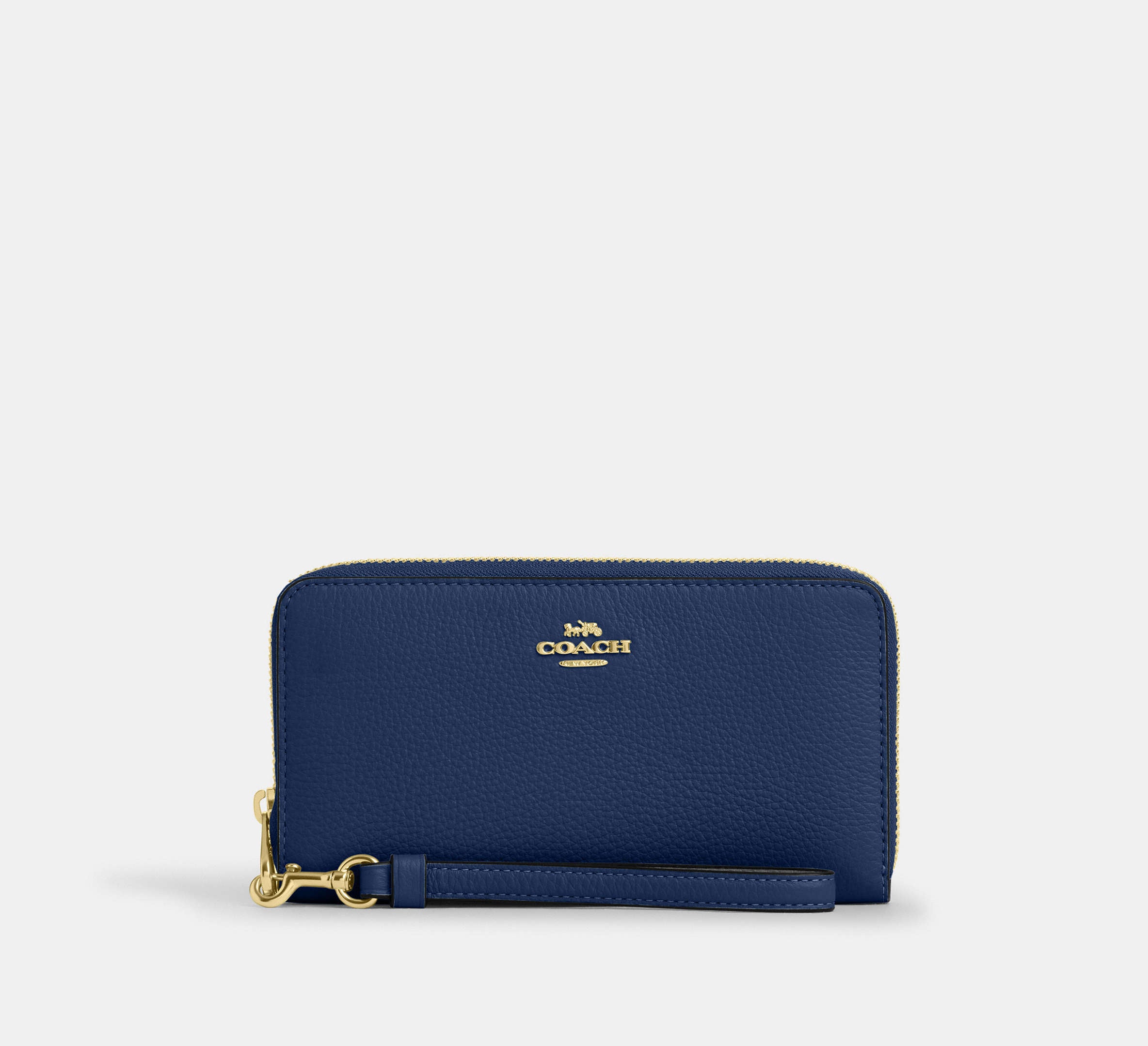 Coach Long Zip Around Wallet - Gold/Deep Blue