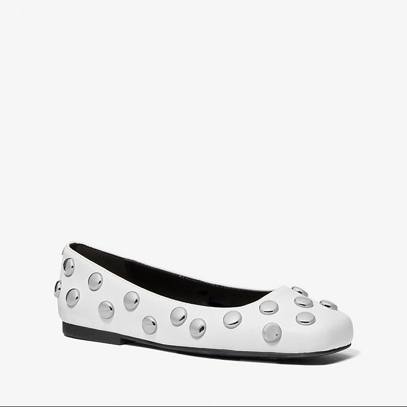 Michael Kors Matilda Studded Leather Ballet Flat-OPTIC WHITE