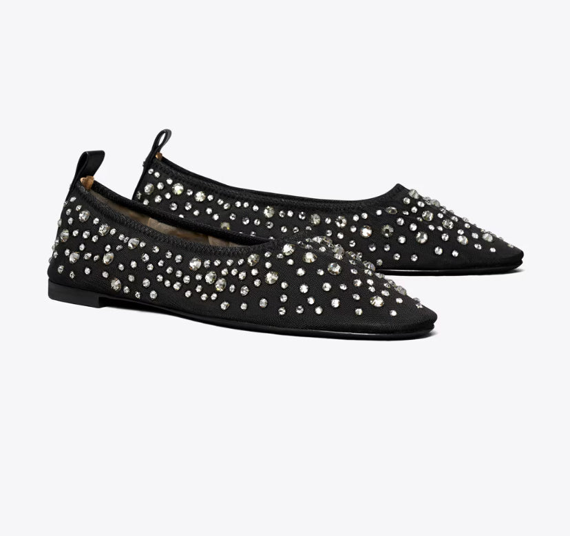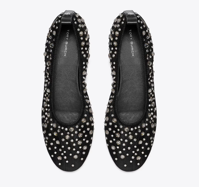 TORY BURCH CRYSTAL BALLET - BLACK