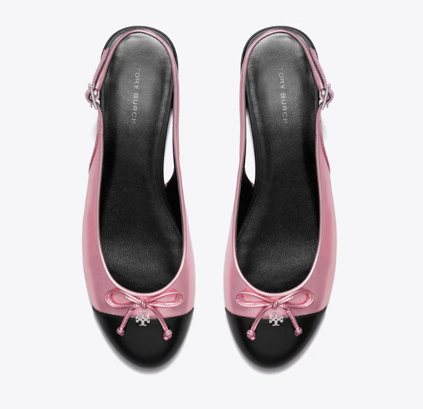 TORY BURCH CAP-TOE SLINGBACK - Pink Etoile / Perfect Black