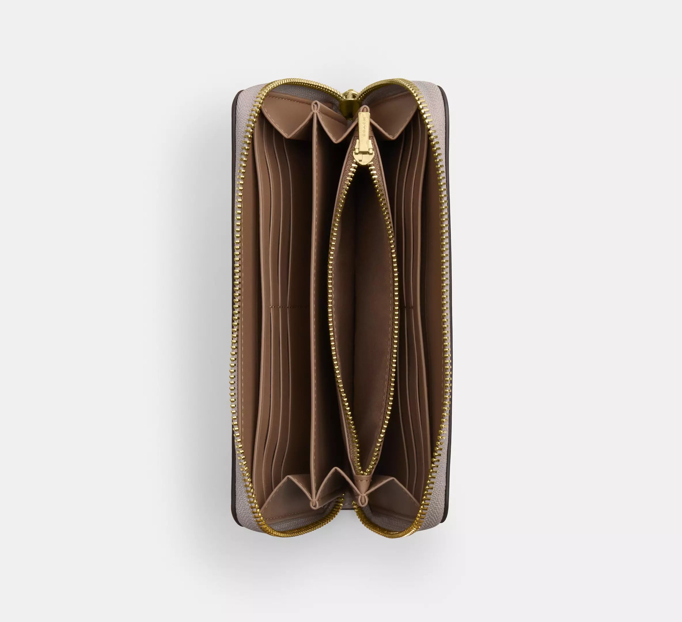 Coach Long Zip Around Wallet - Gold/Grey Birch