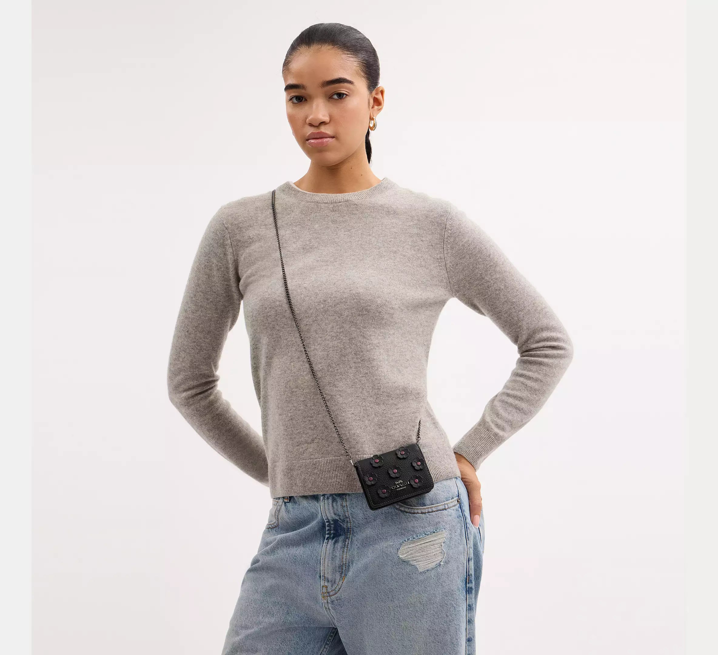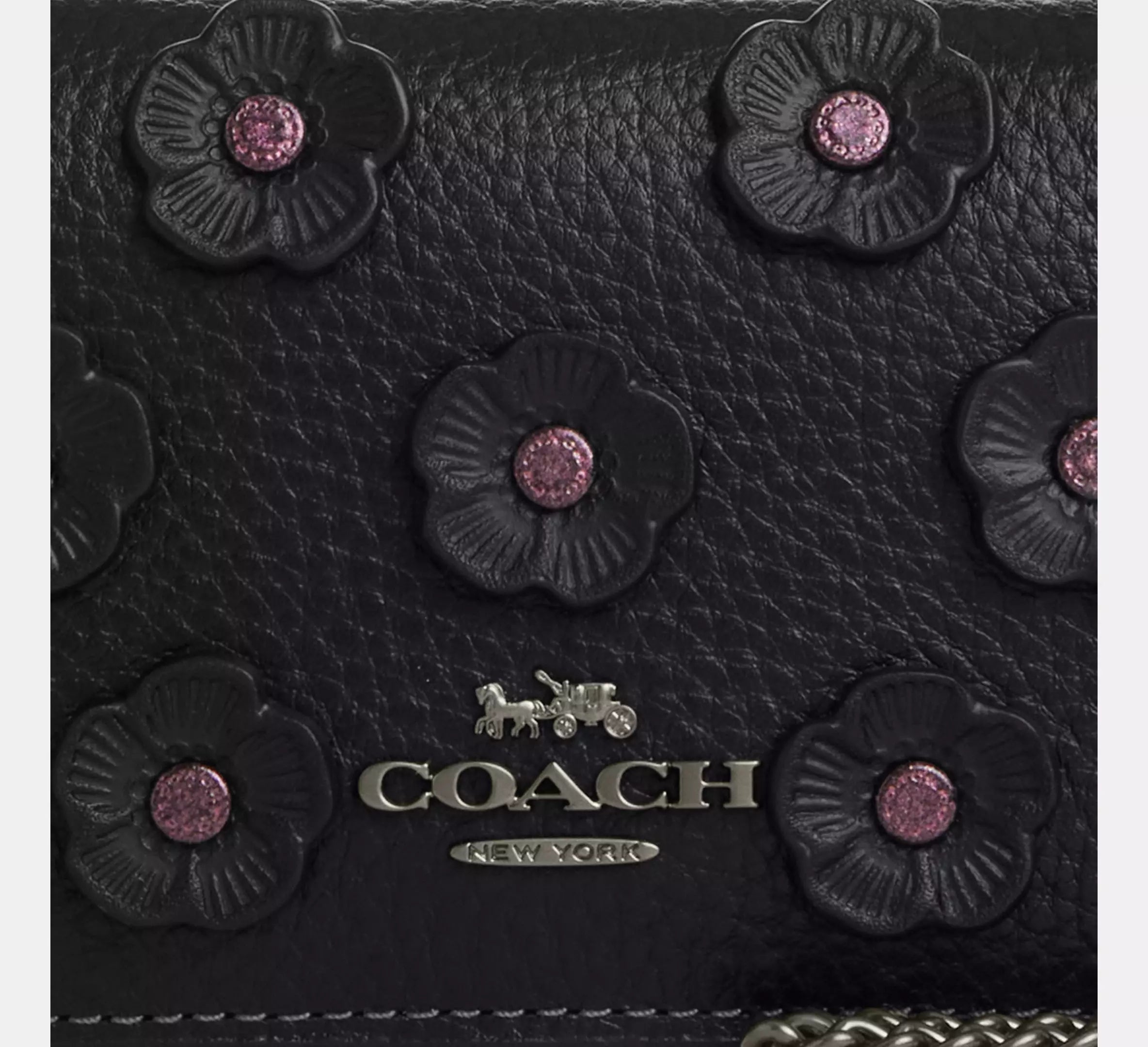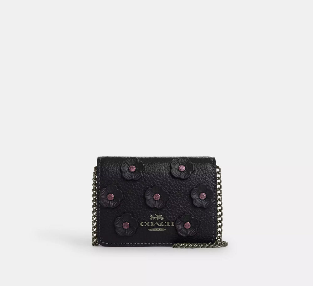 Coach Mini Wallet On A Chain With Floral Applique - Gunmetal/Black