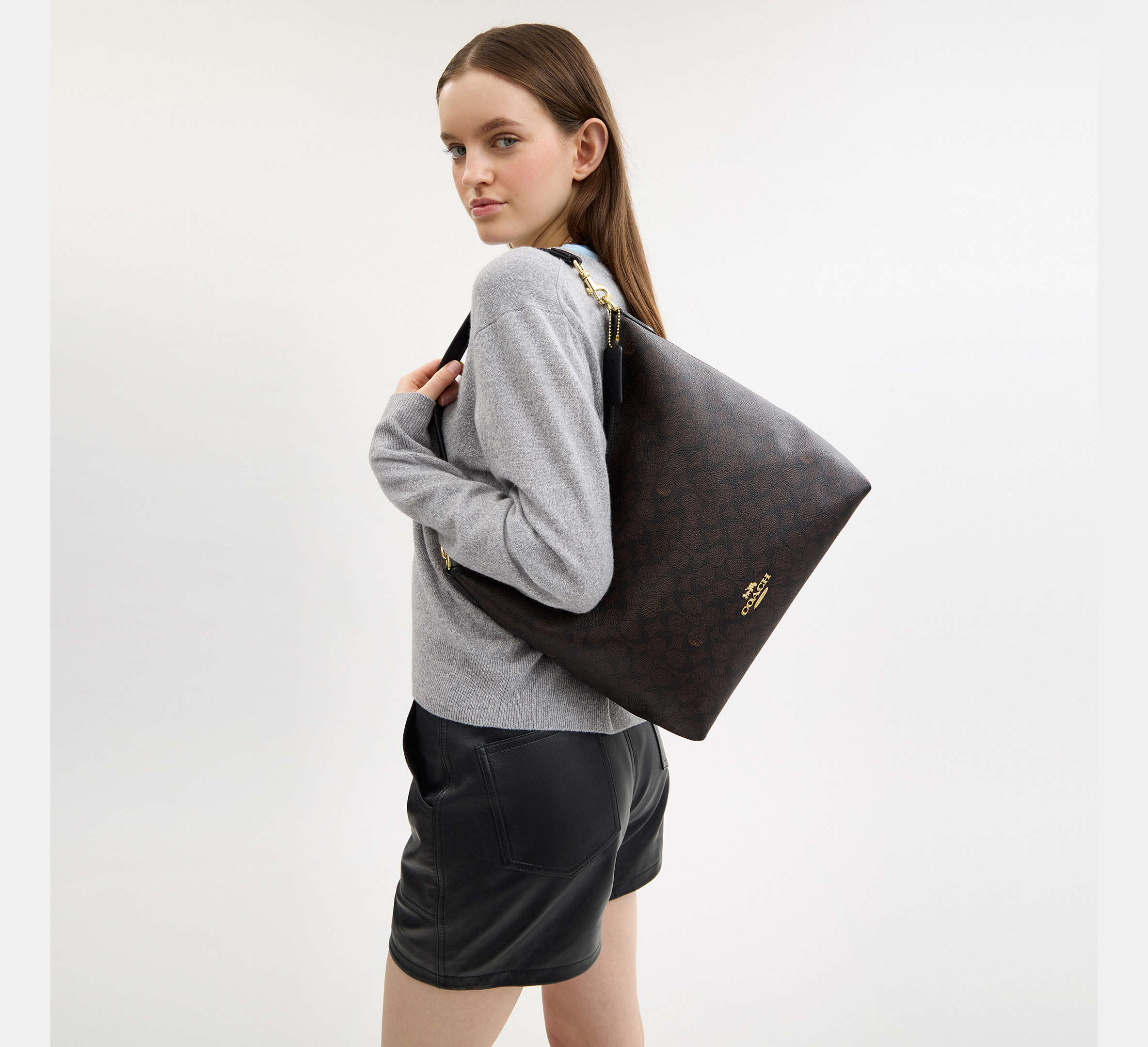 Coach Laurel Large Shoulder Bag In Signature Gold/Walnut/Black
