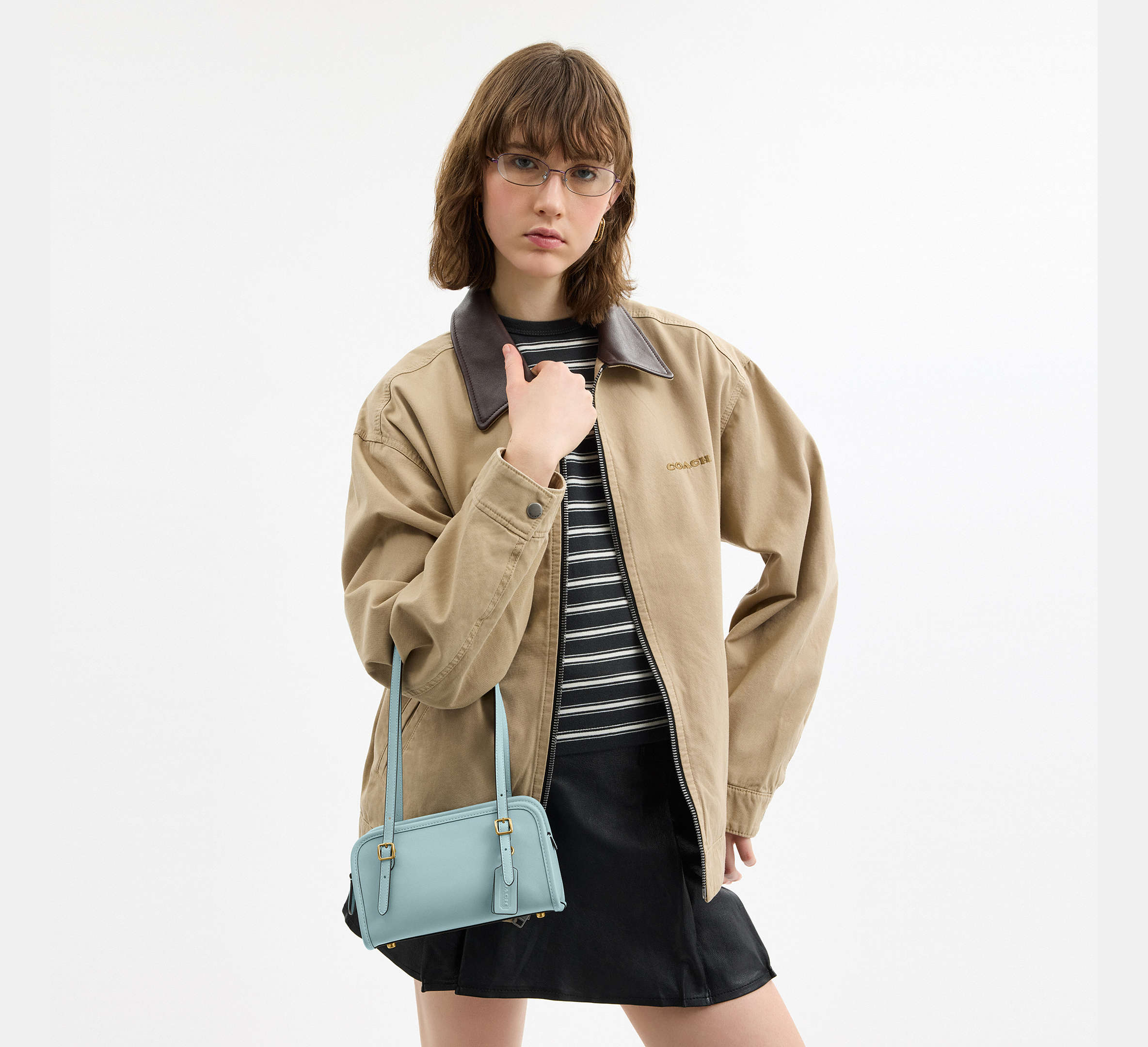 Coach Swing Zip Bag 20 Brass/Light Blue
