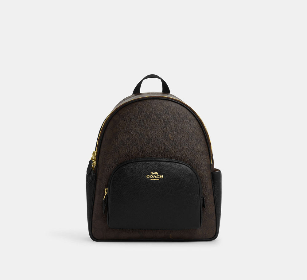 Coach Court Backpack In Signature - Gold/Walnut/Black