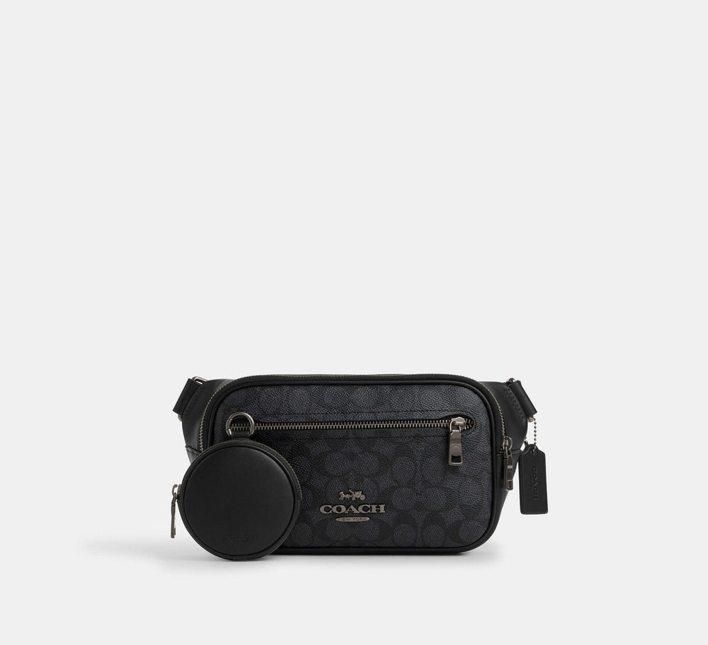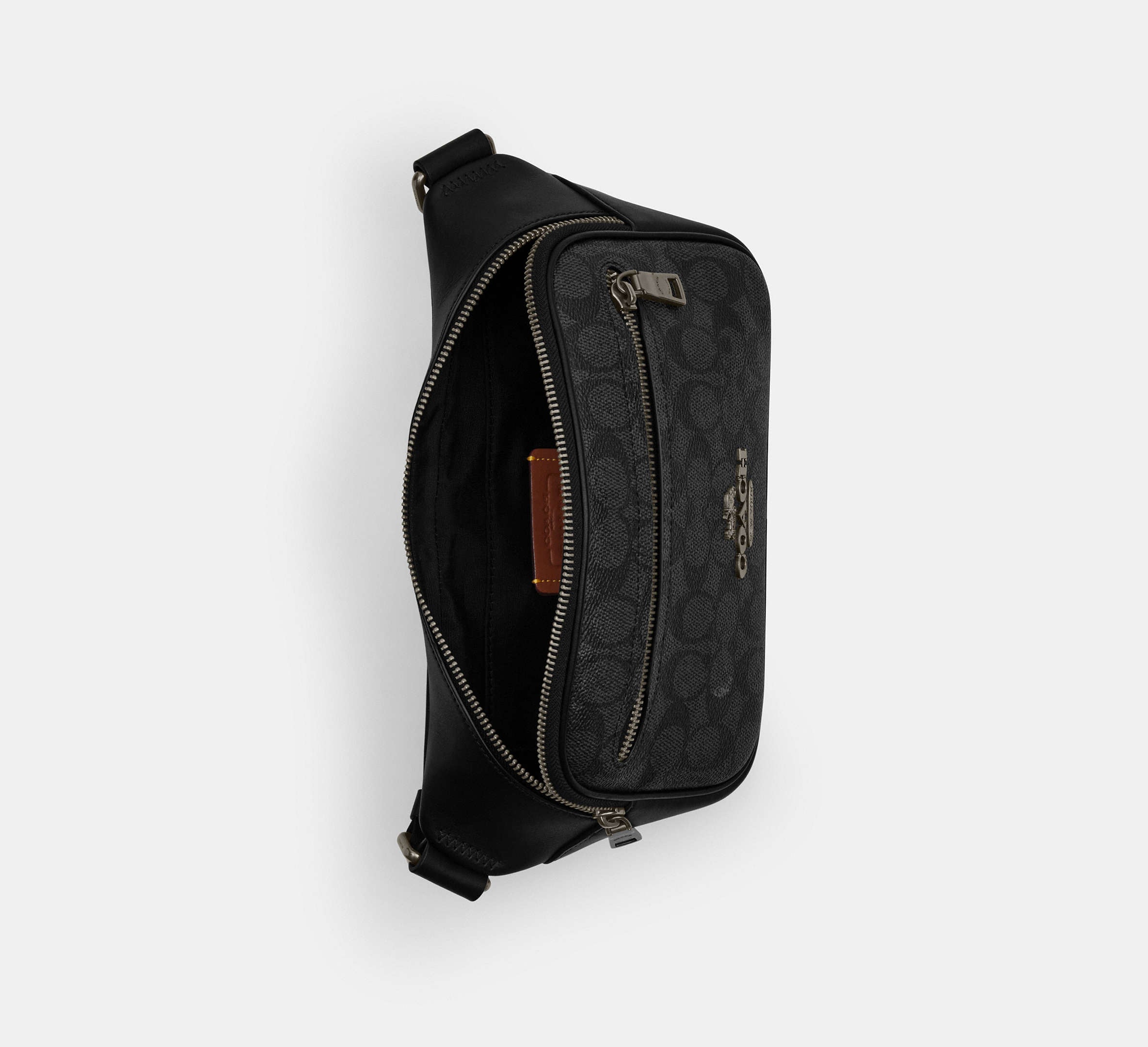 Coach Elias Belt Bag In Signature-Gunmetal/Charcoal/Black
