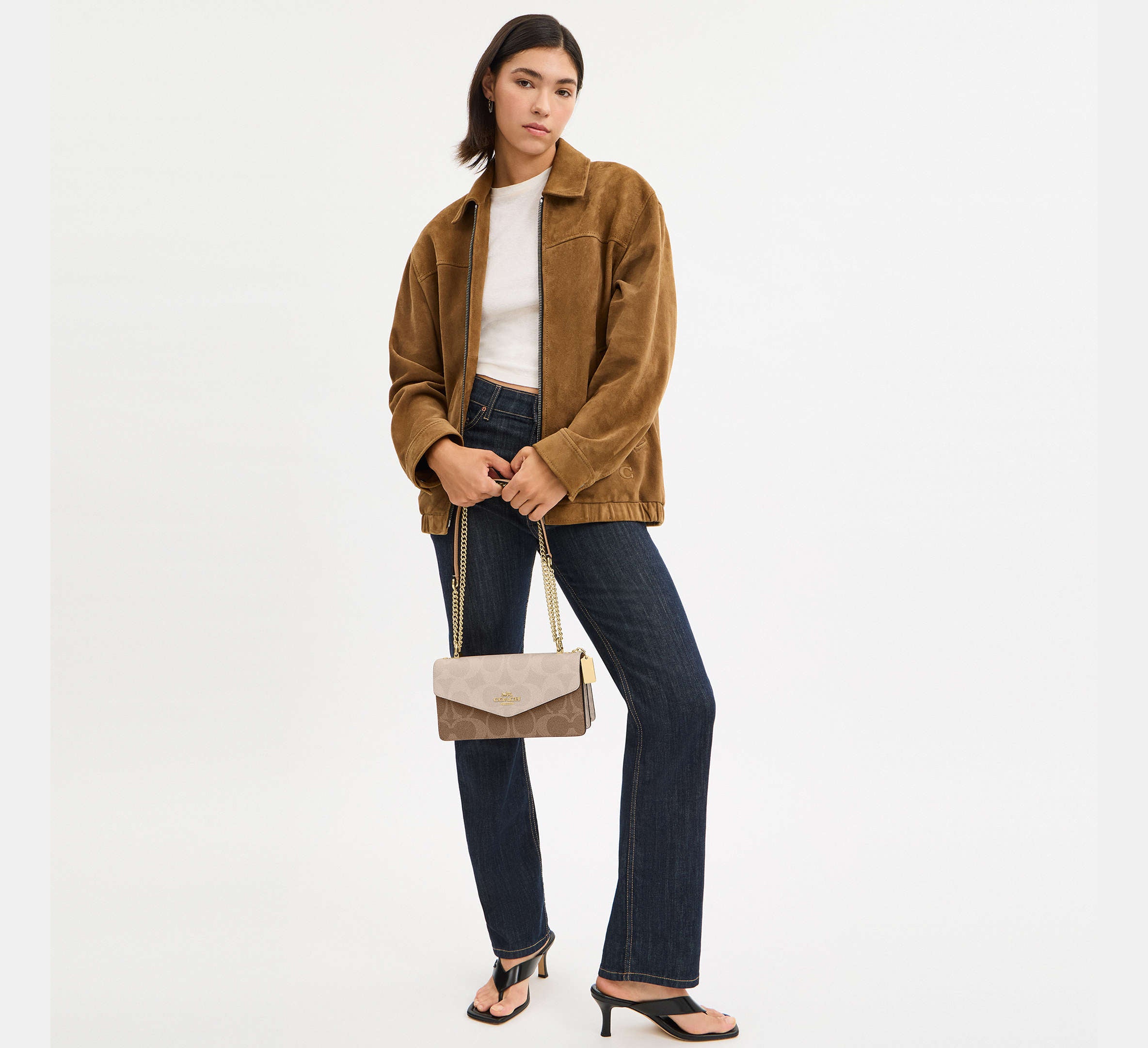 Coach Klare Envelope Crossbody Bag In Blocked Signature - Gold/Sand/Tan