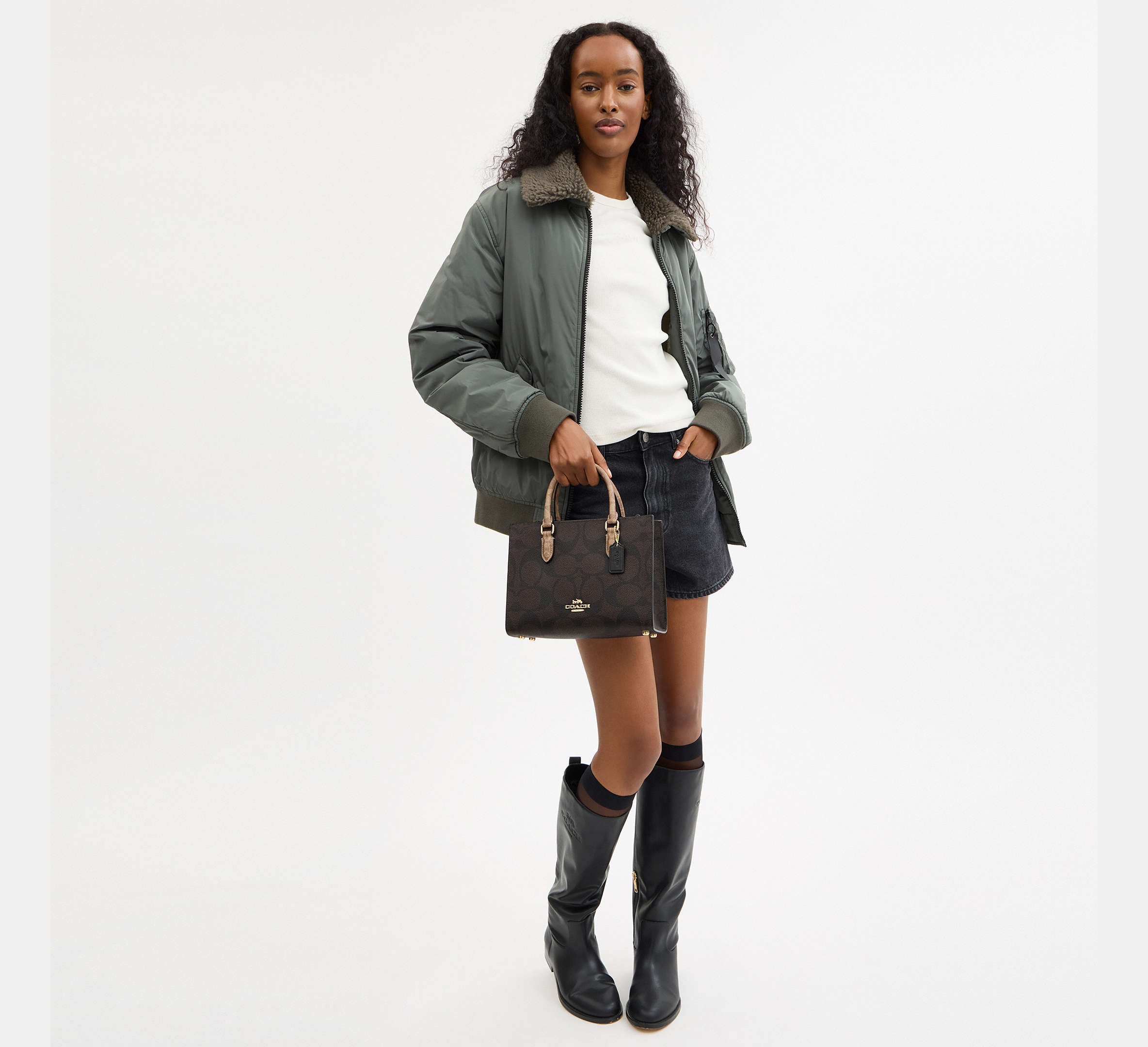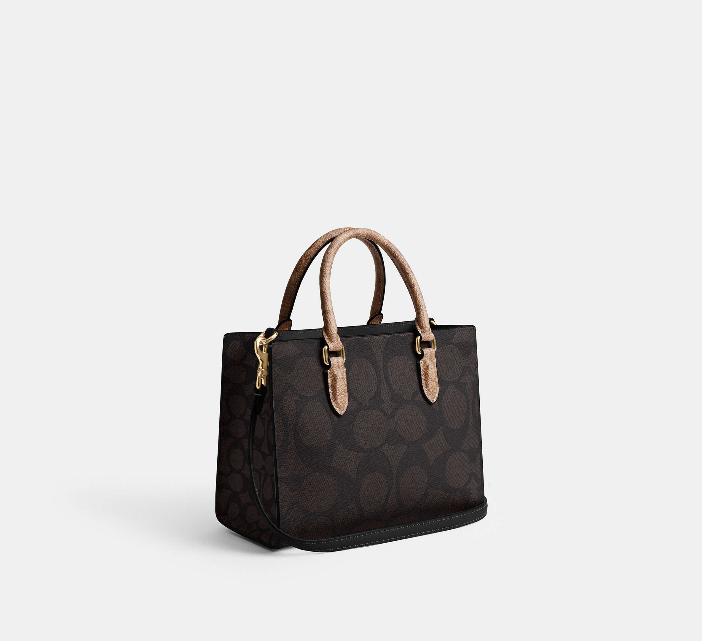 Coach Maggie Small Tote Bag In Blocked Signature - Gold/Walnut/Tan