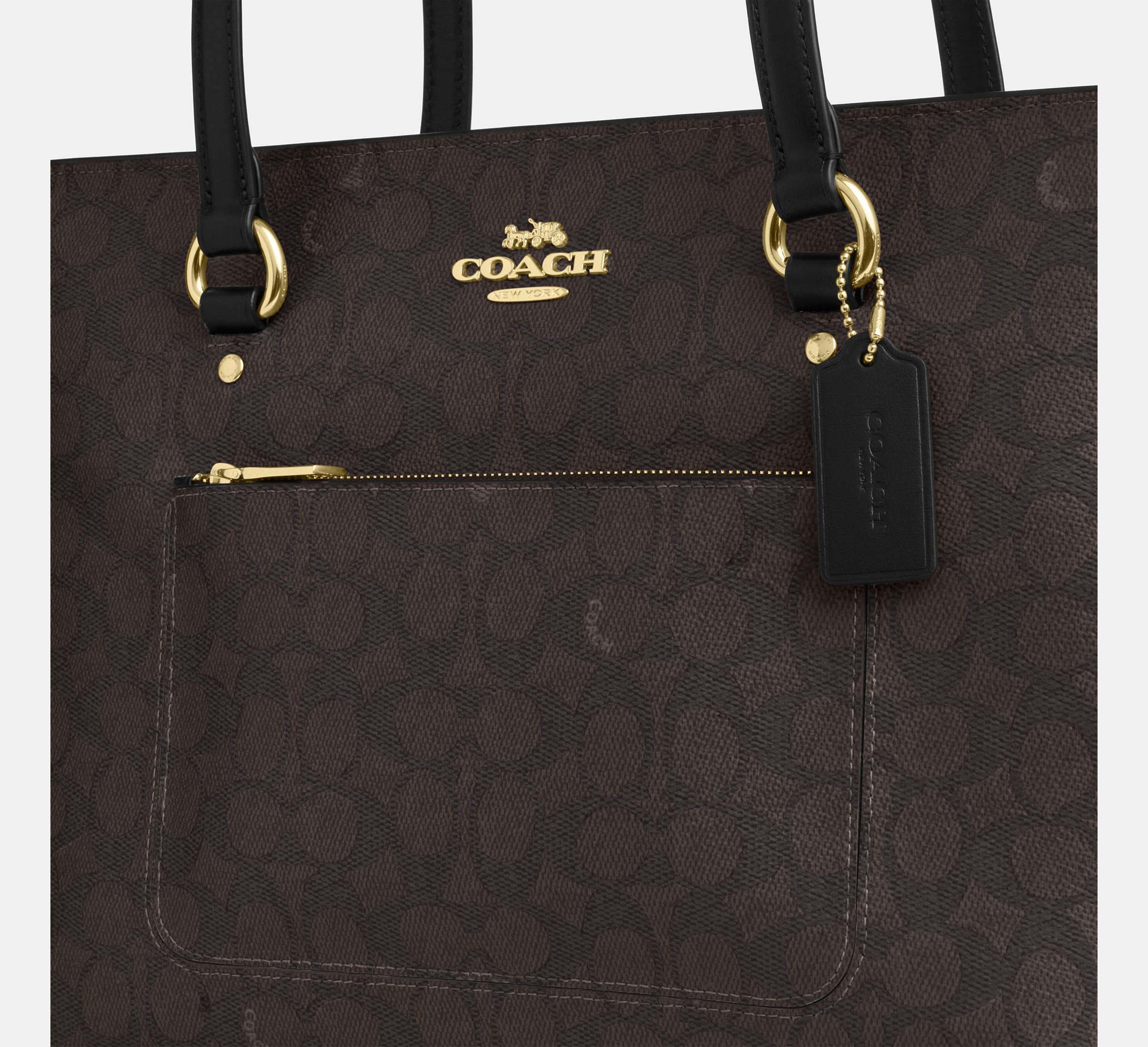 Coach Station Tote Bag In Signature - Gold/Walnut/Black