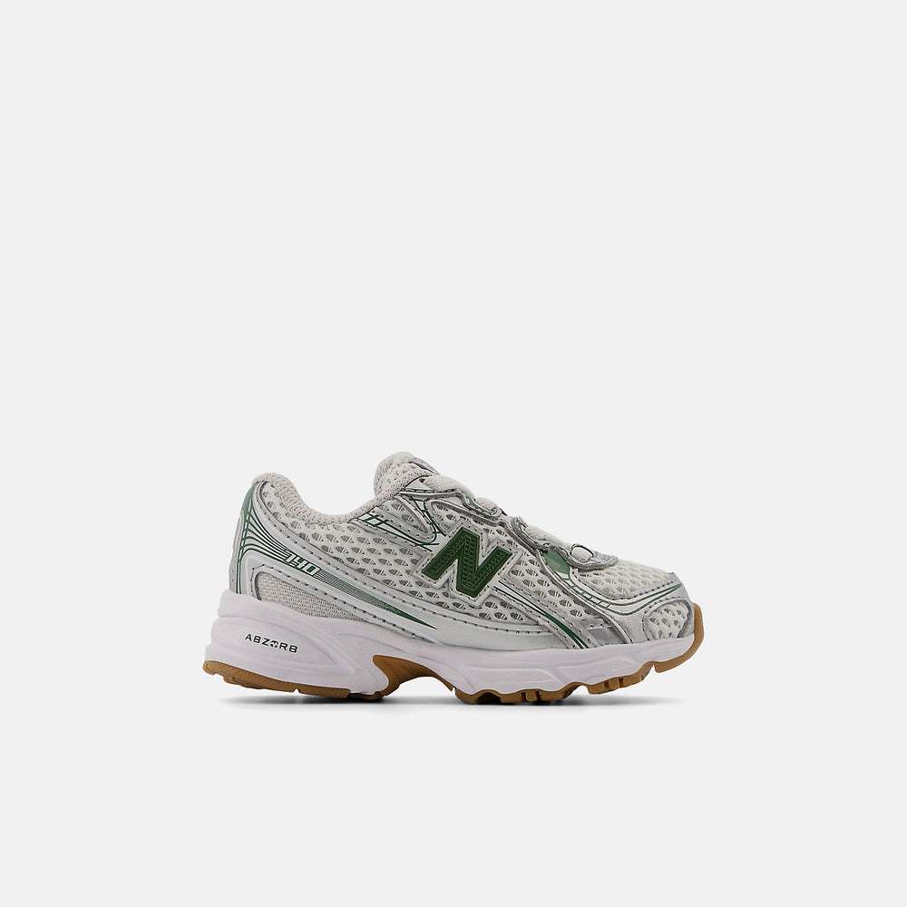 New Balance 740 BUNGEE LACE Kids Silver Metalic with Dark Alpine Green-IZ740SF