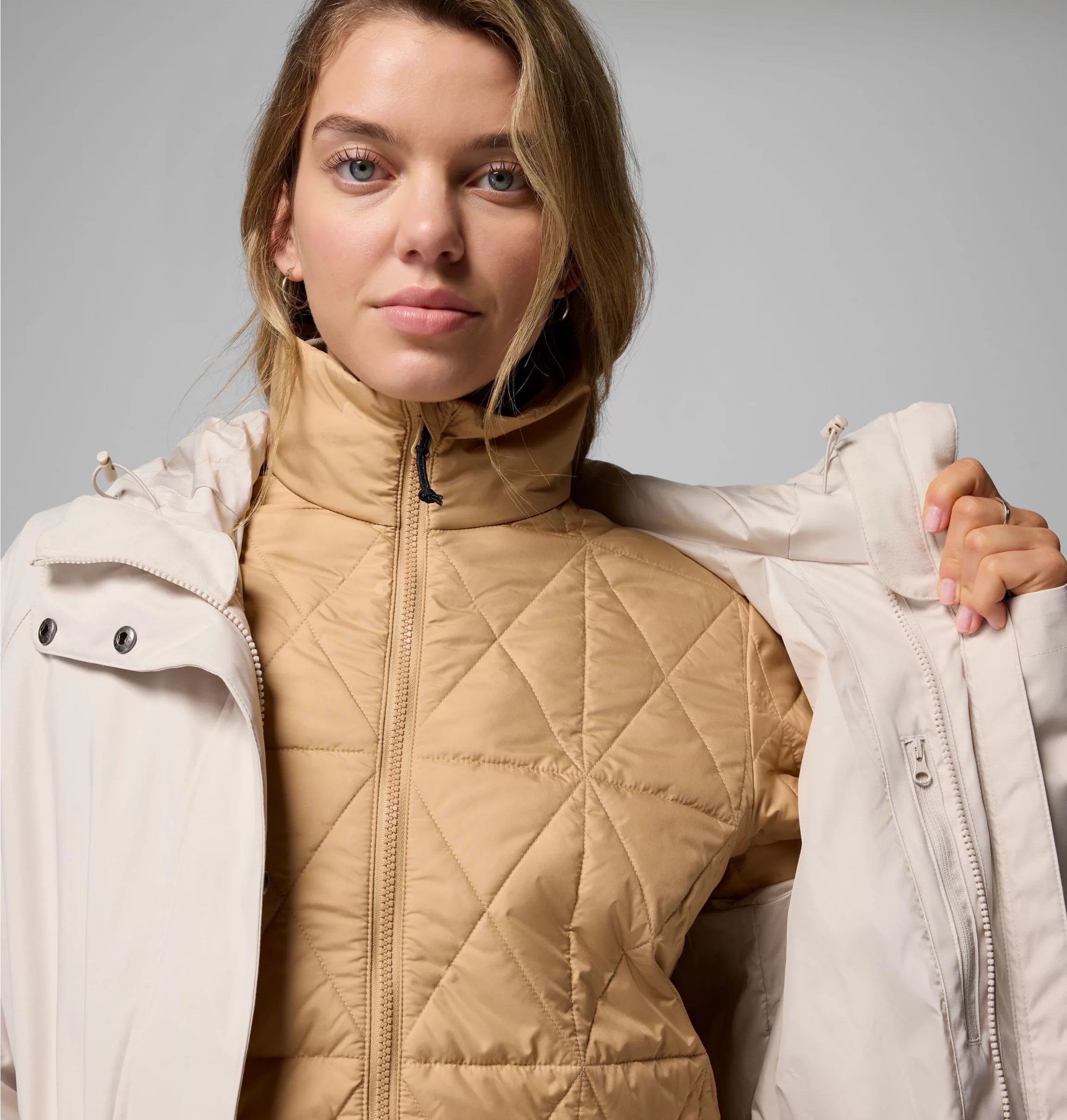 İç astar, nemliyken bile hacmini koruyan yalıtım malzemesi içerir; böylece soğuk ve nemli havalarda bile sıcak kalırsın.