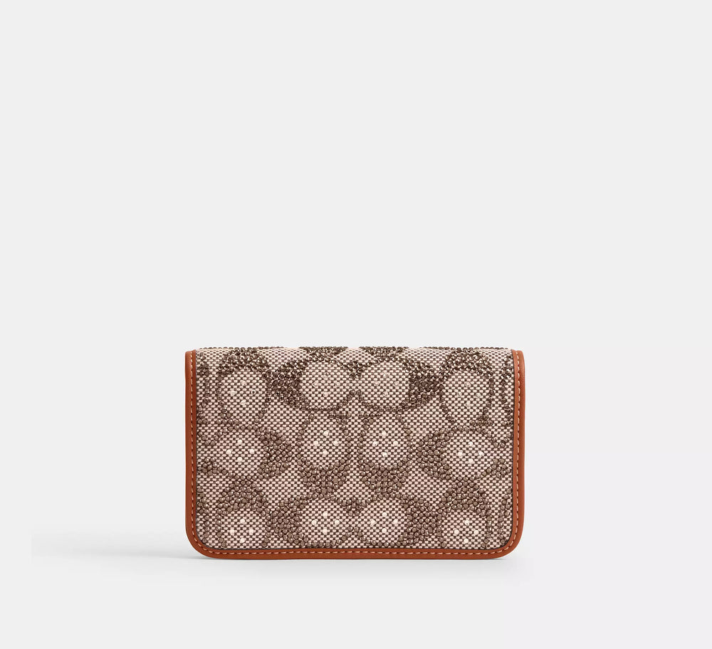 Coach Essential Slim Card Case In Crystal Signature Jacquard - Silver/Burnished Amber