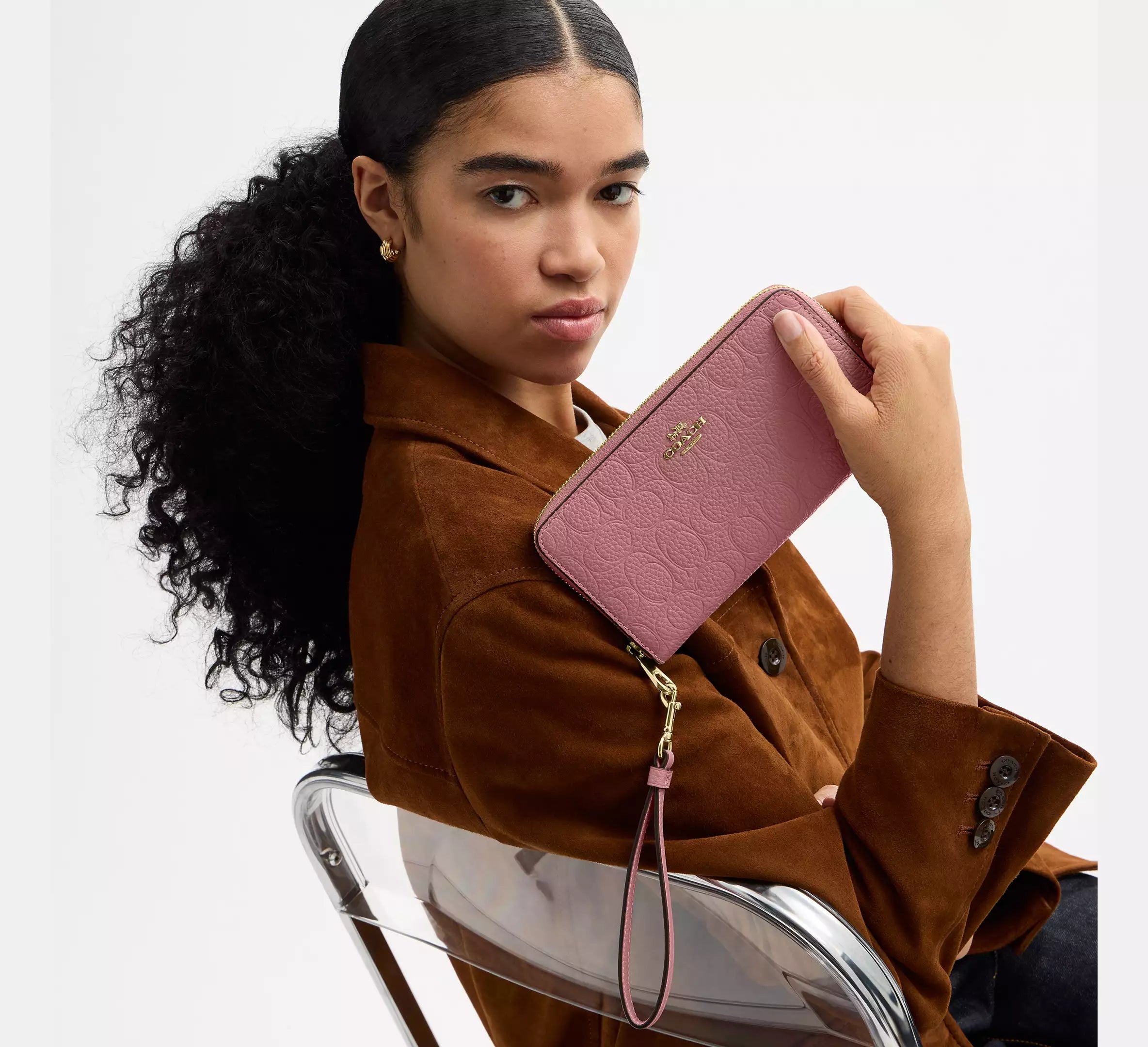 Coach Long Zip Around Wallet In Signature Leather - Gold/Peony