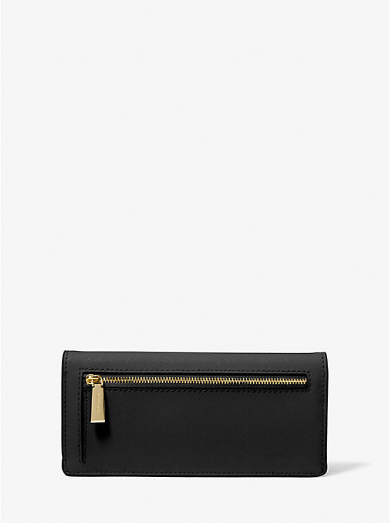 Michael Kors Jet Set Large Saffiano Leather Snap-Front Wallet- BLACK