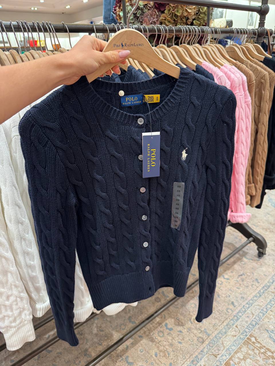 Ralph Lauren Cable-Knit Cotton Crewneck Cardigan Lacivert - Outlet