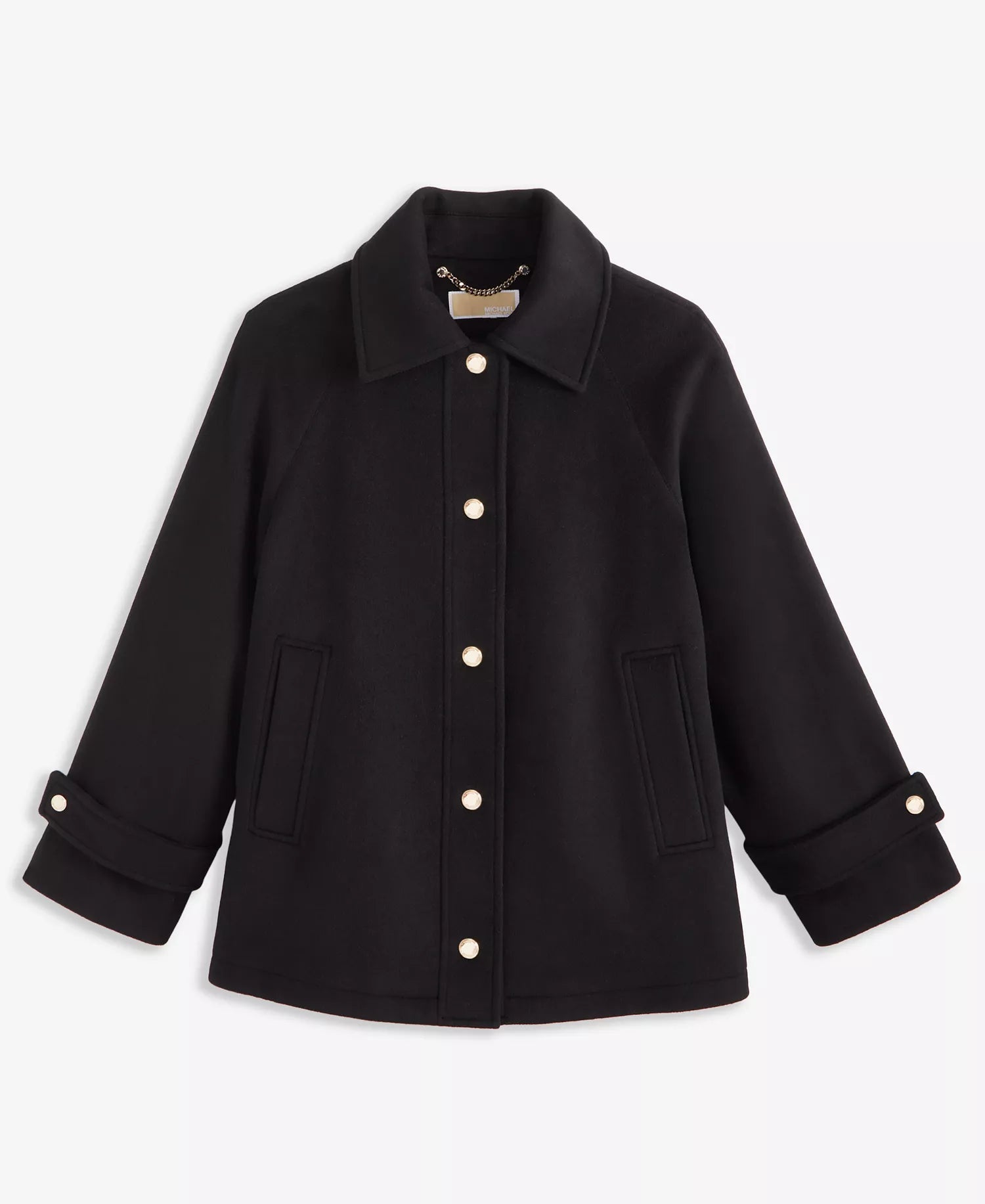 Michael Kors Women's Collared Button-Front Coat 1-Black
