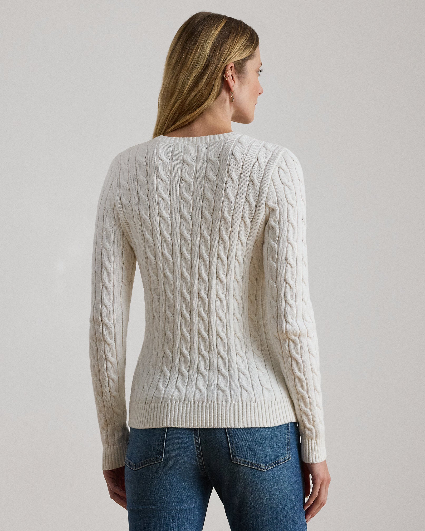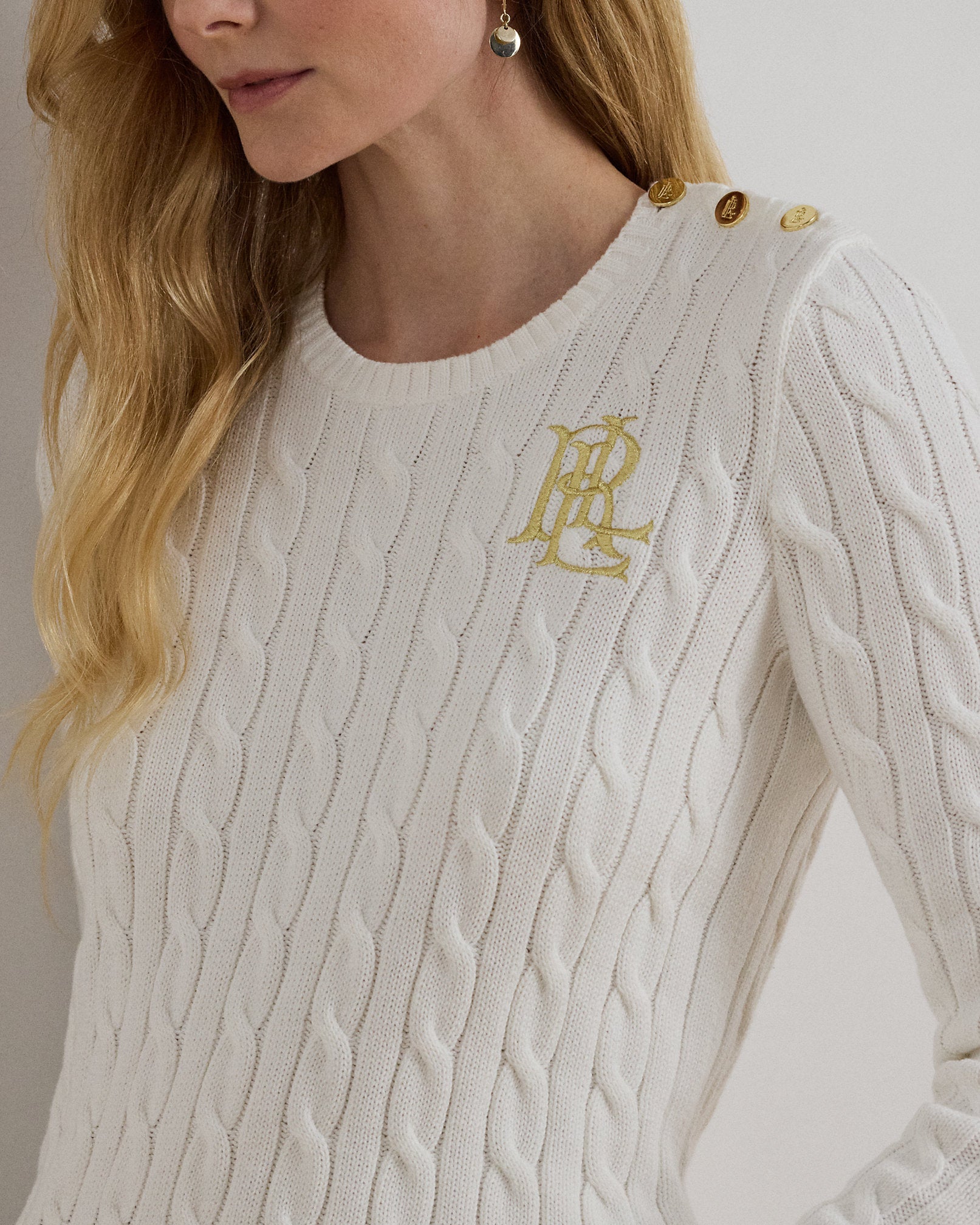 Ralp Lauren Women Button-Trim Cable-Knit Cotton Sweater- Mascarpone Cream