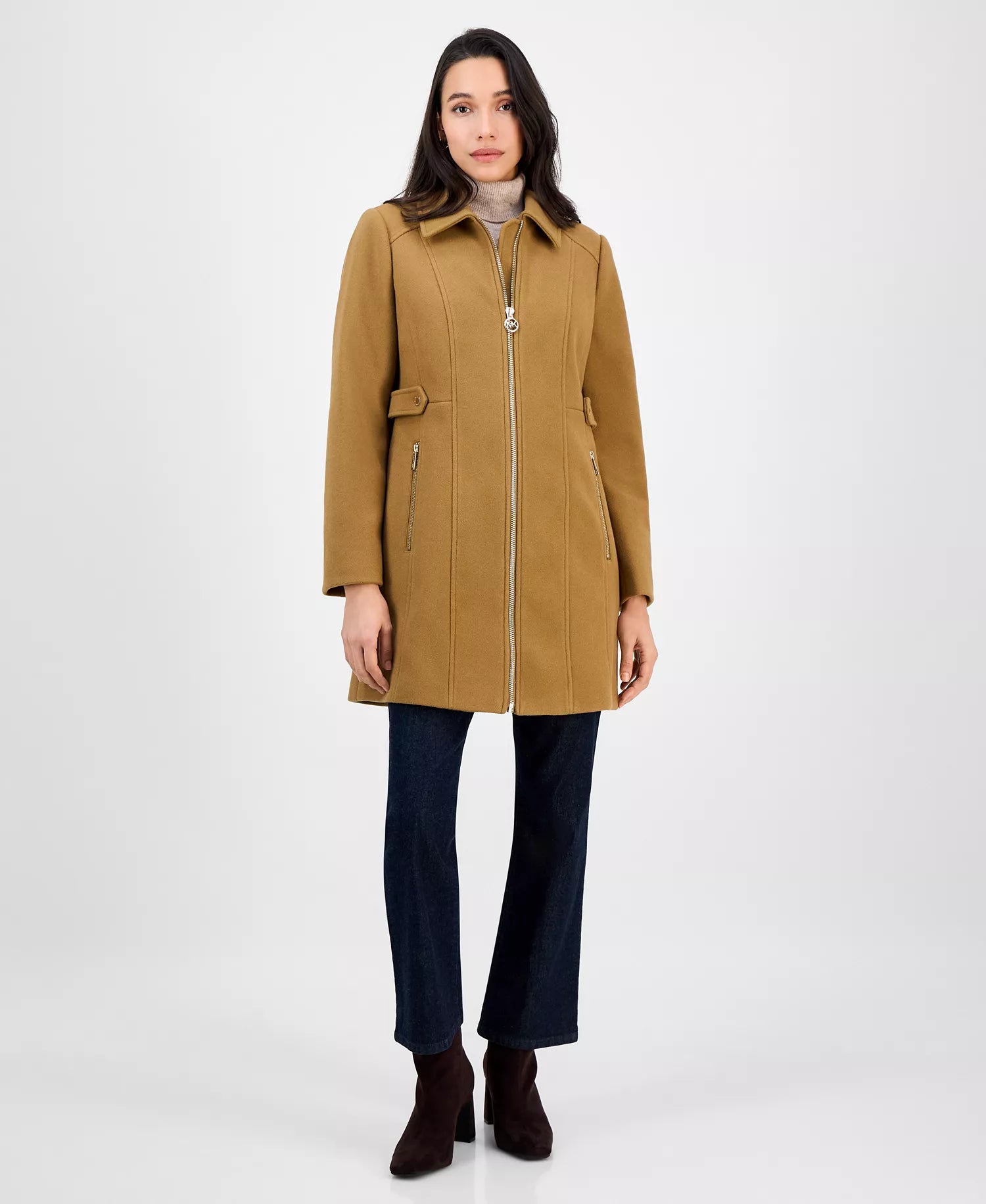 Michael Kors Women's Collared Zip-Front Coat-Dk Camel