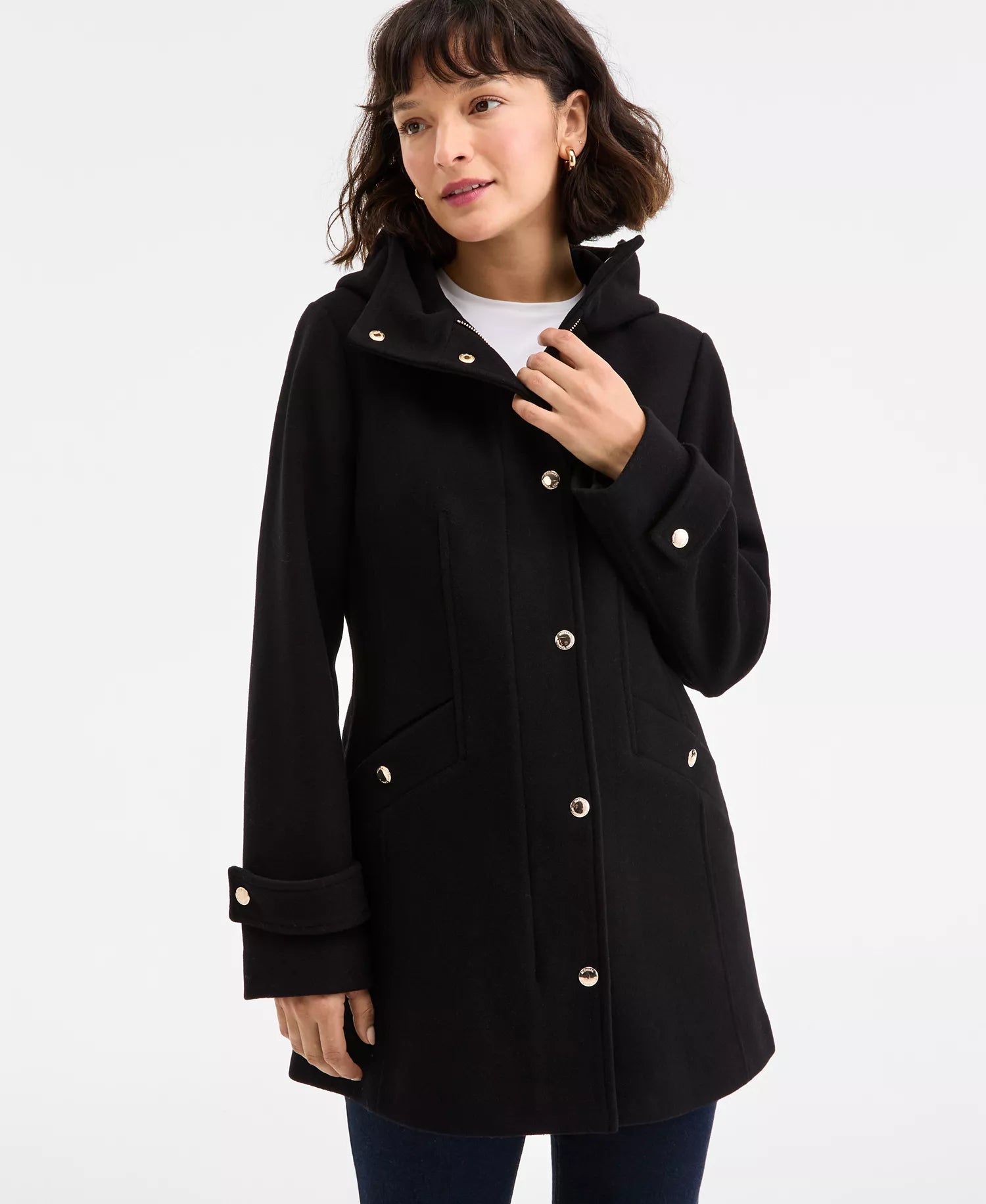 Michael Kors Women's Hooded Button-Front Coat 4-Black