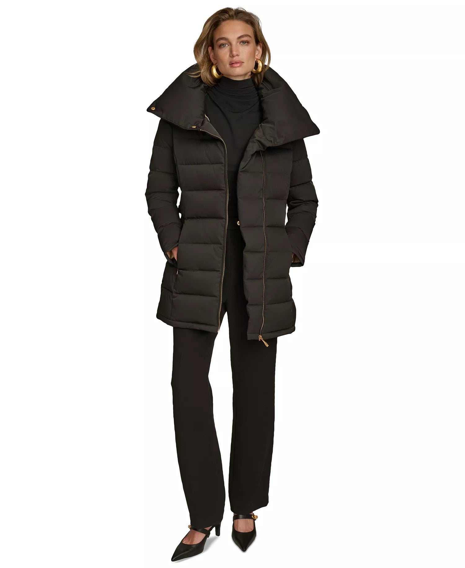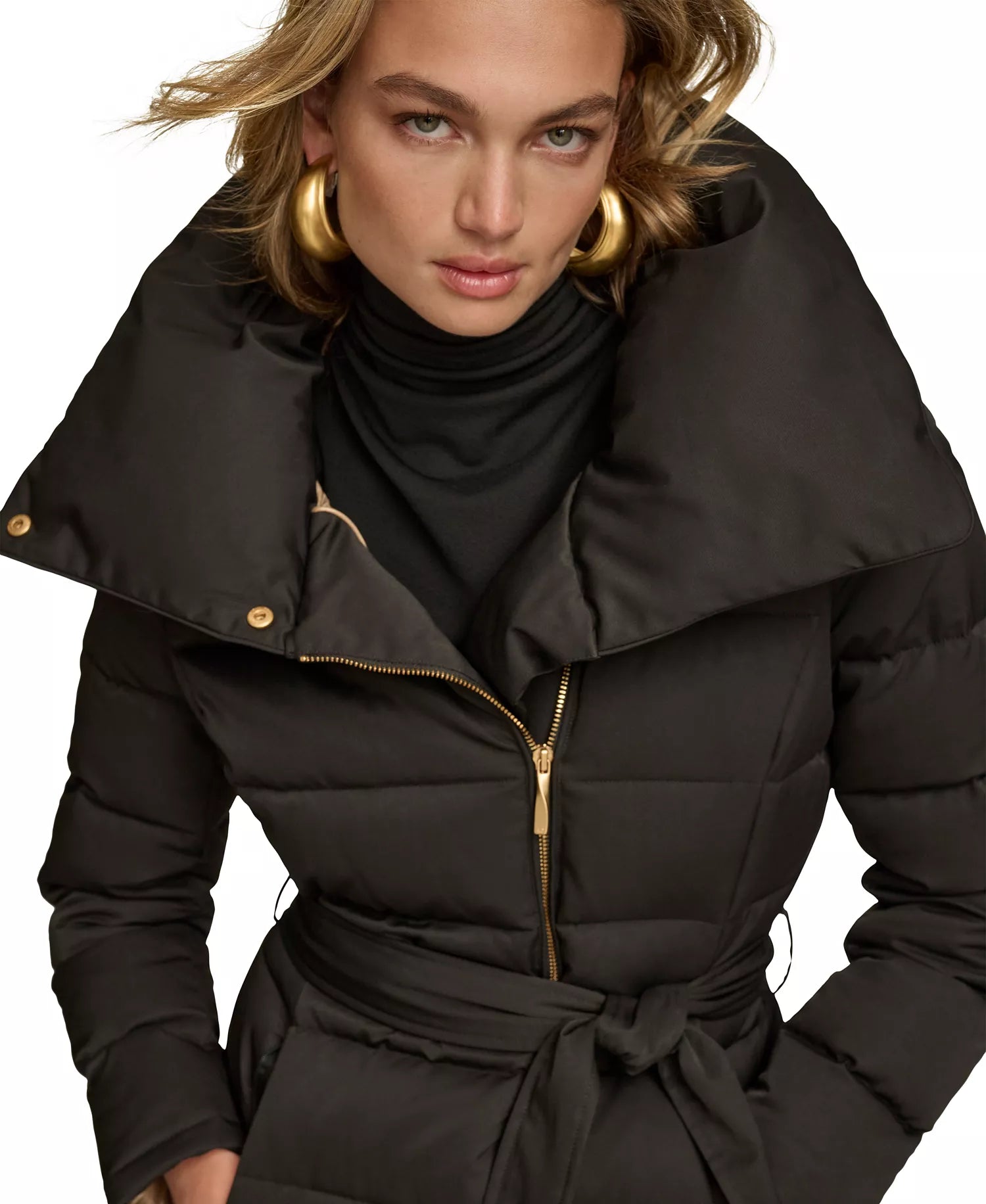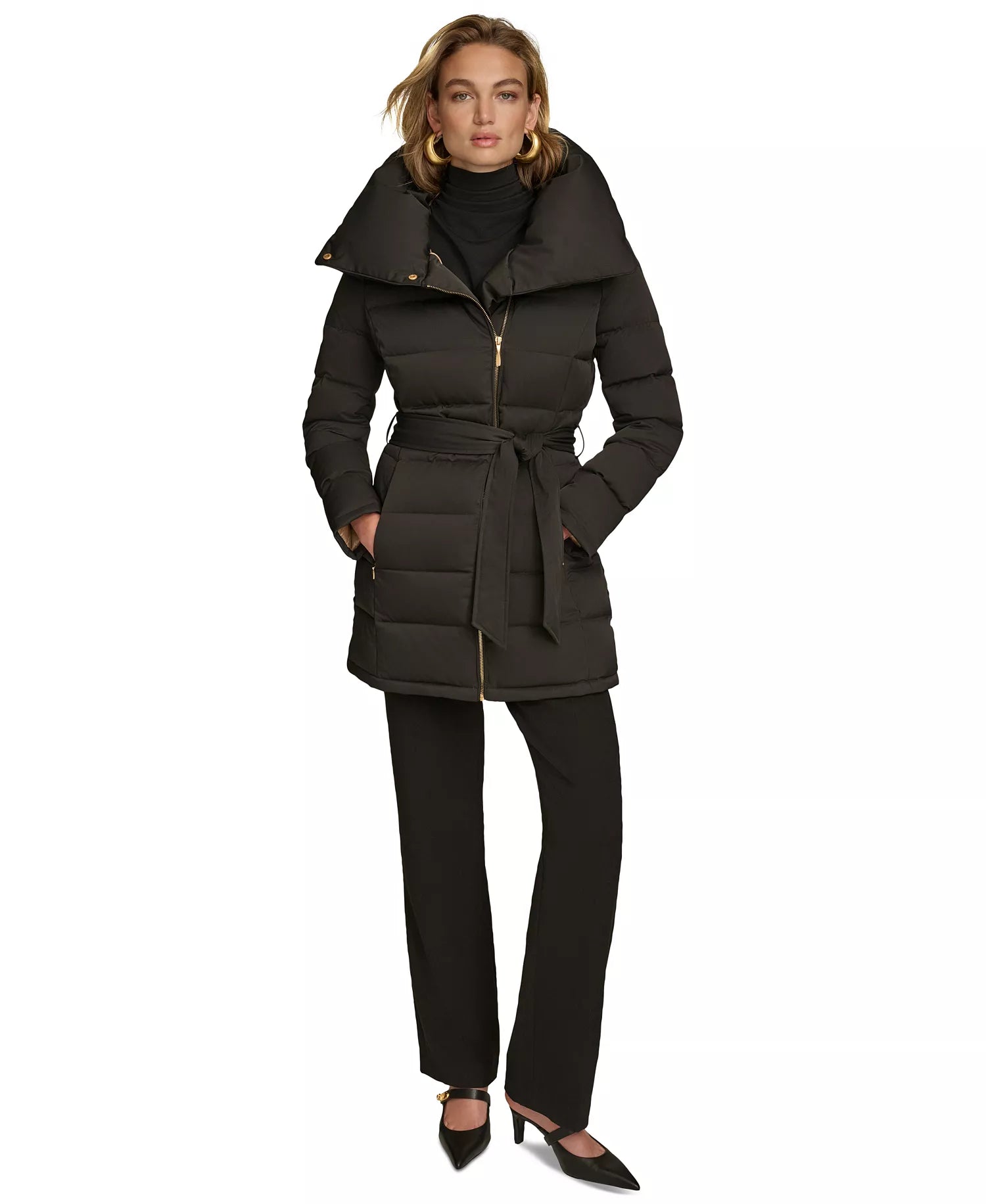 Donna Karan New York Women's Belted Asymmetric Puffer Coat - Black