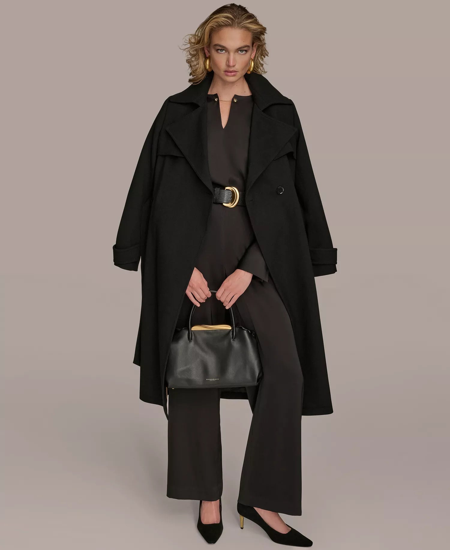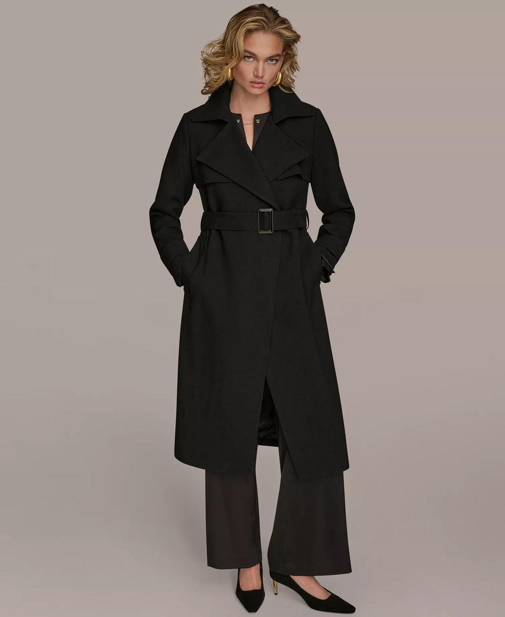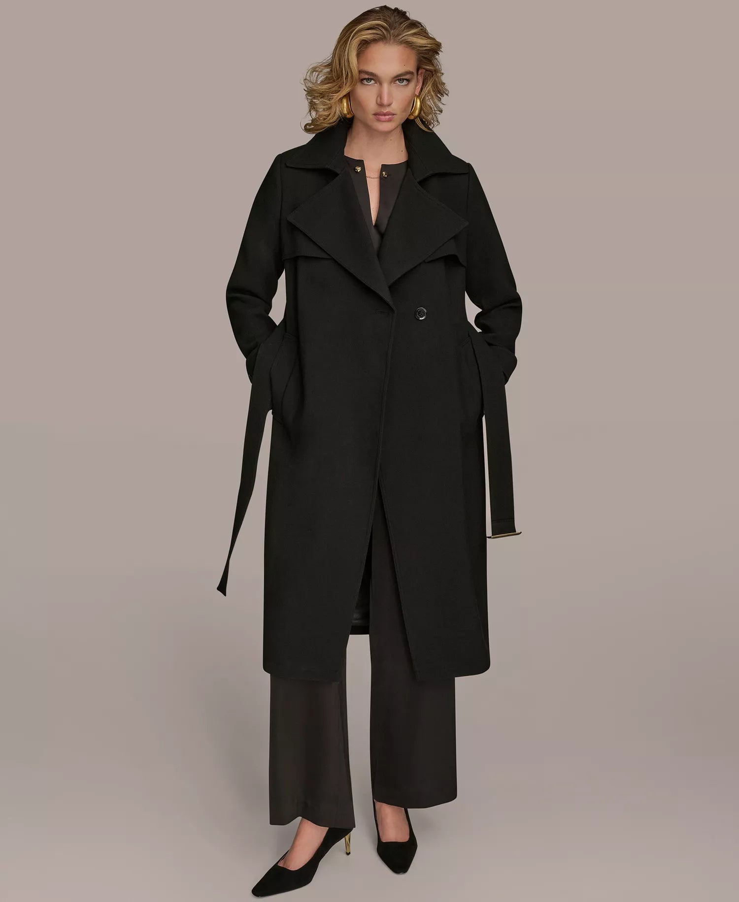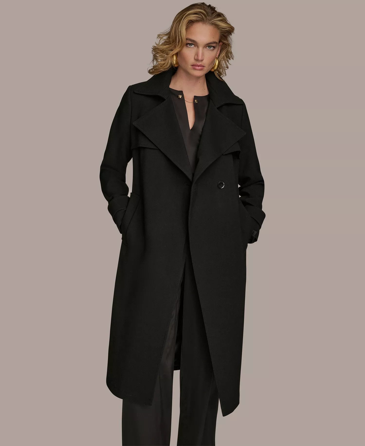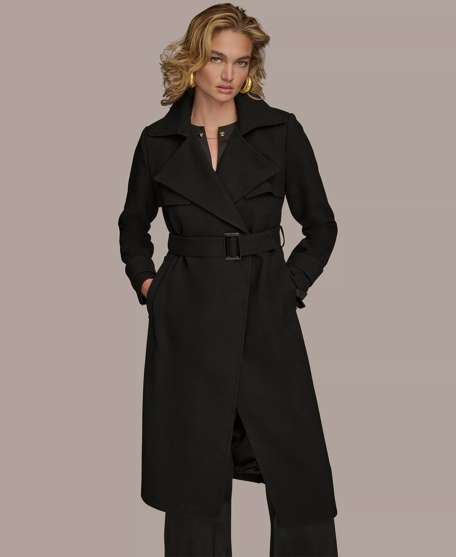 Donna Karan New York Women's Belted Notched-Collar Trench Coat - Black