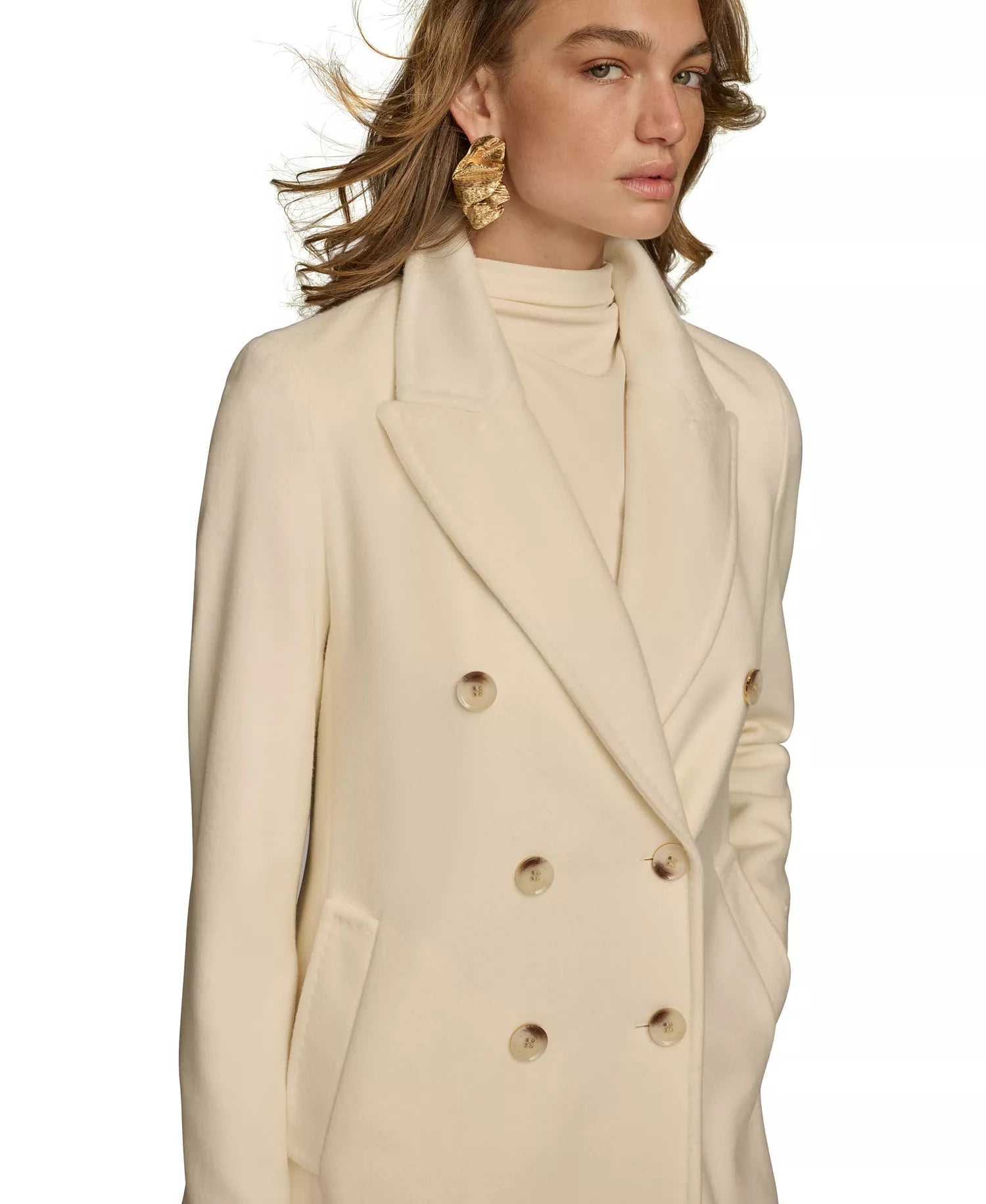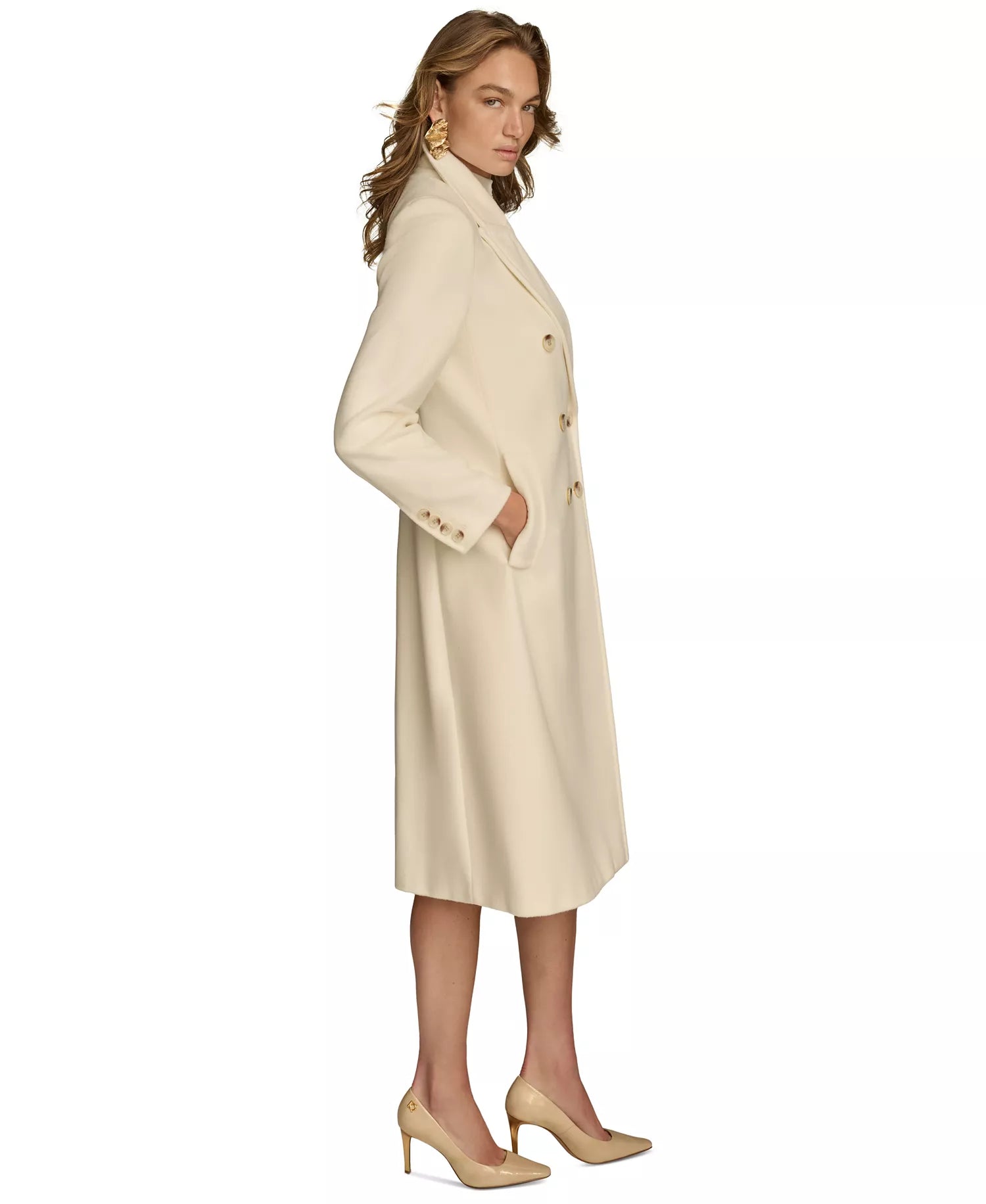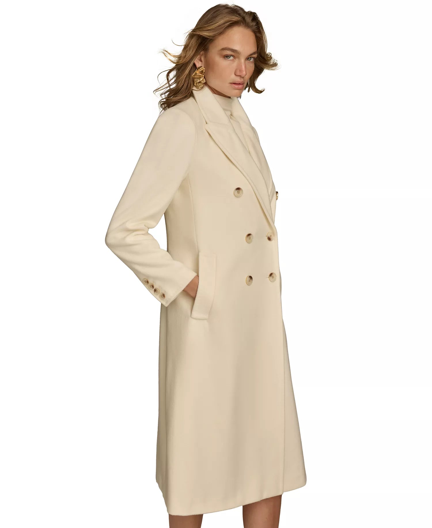 Donna Karan New York Women's Double-Breasted Reefer Coat - Ivory