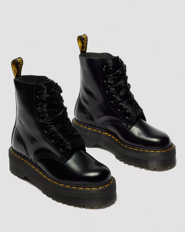 Dr. Martens Molly Women's Leather Platform Boots - BLACK BUTTERO