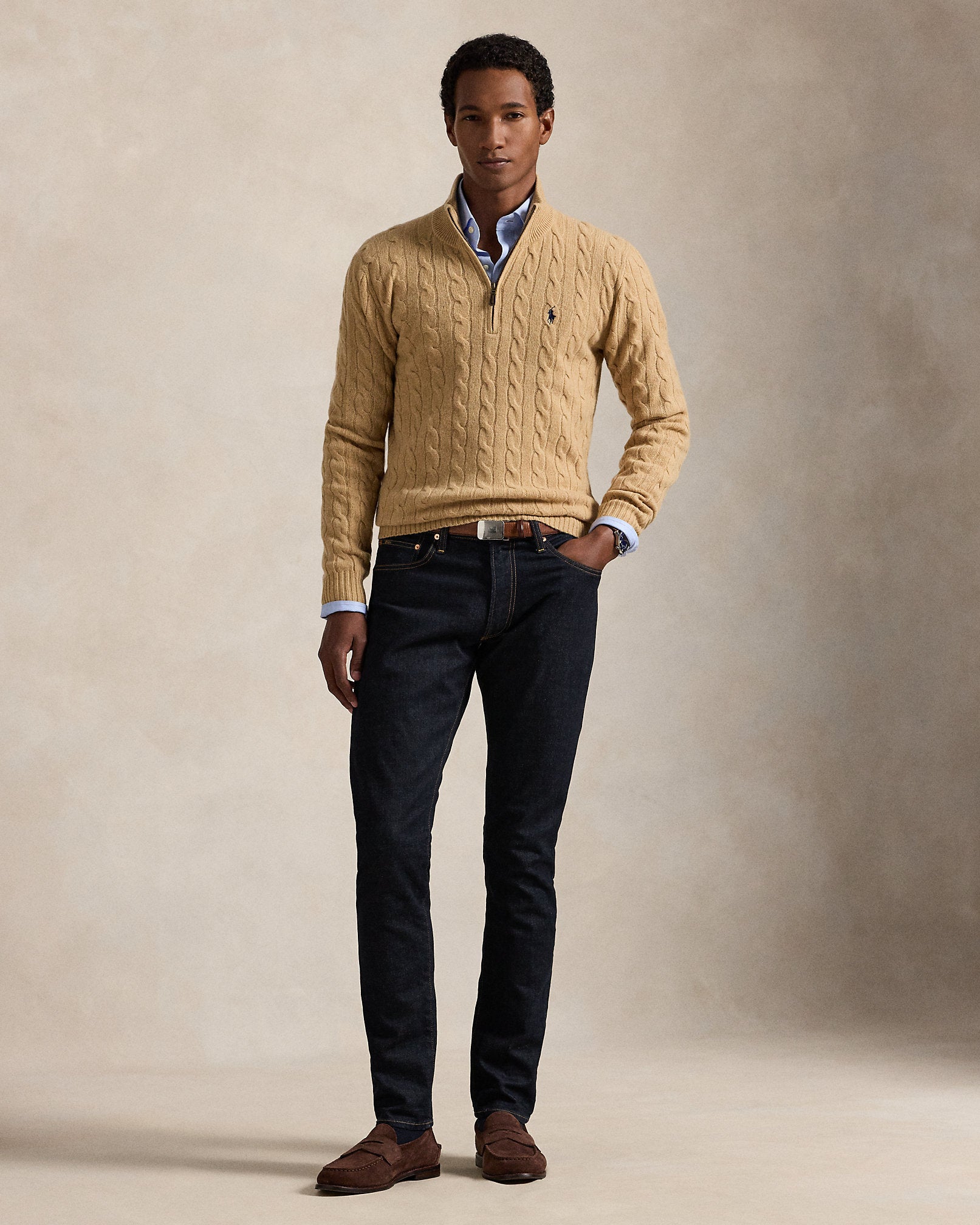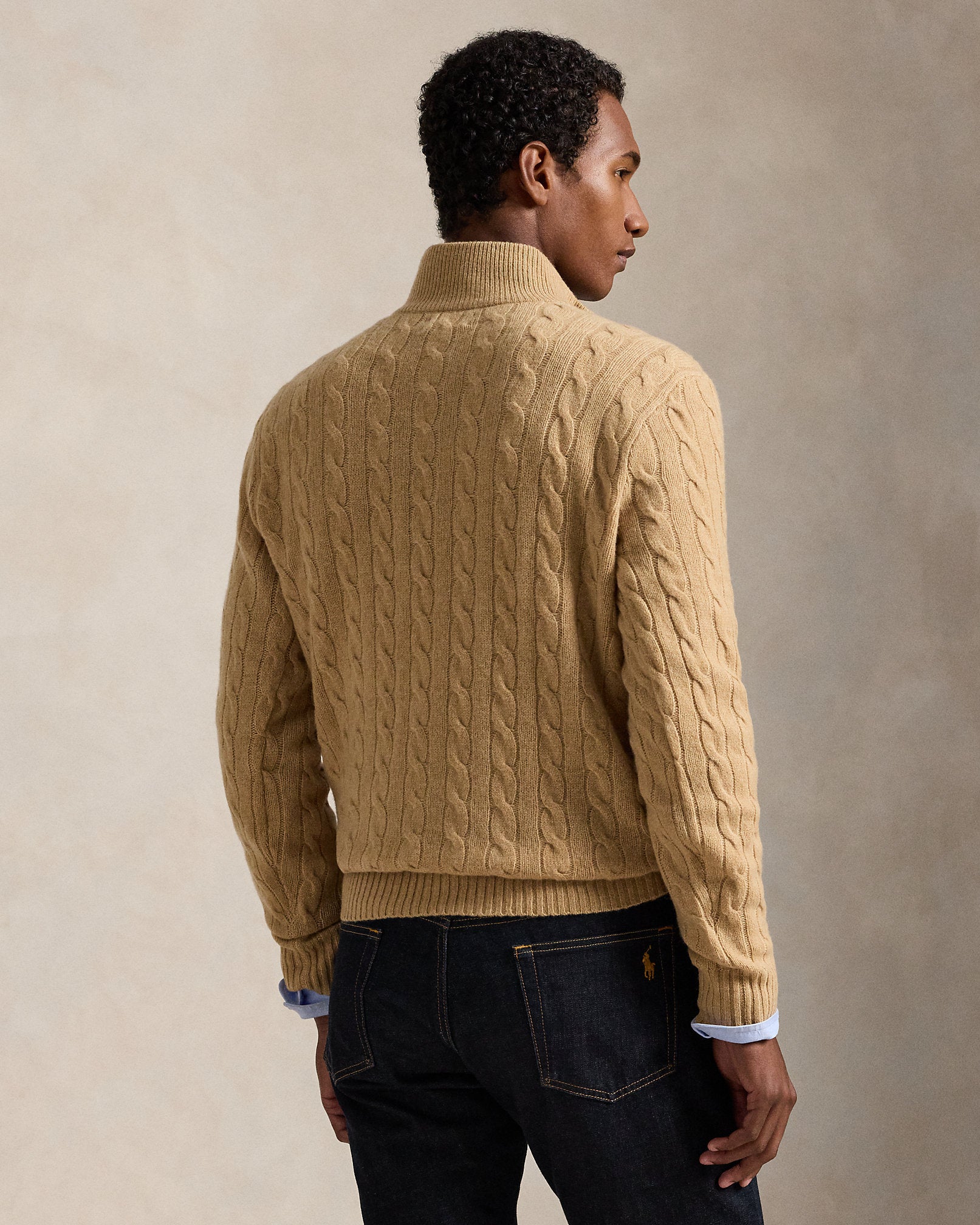Ralph Lauren Cable-Knit Wool-Cashmere Sweater- Camel Melange
