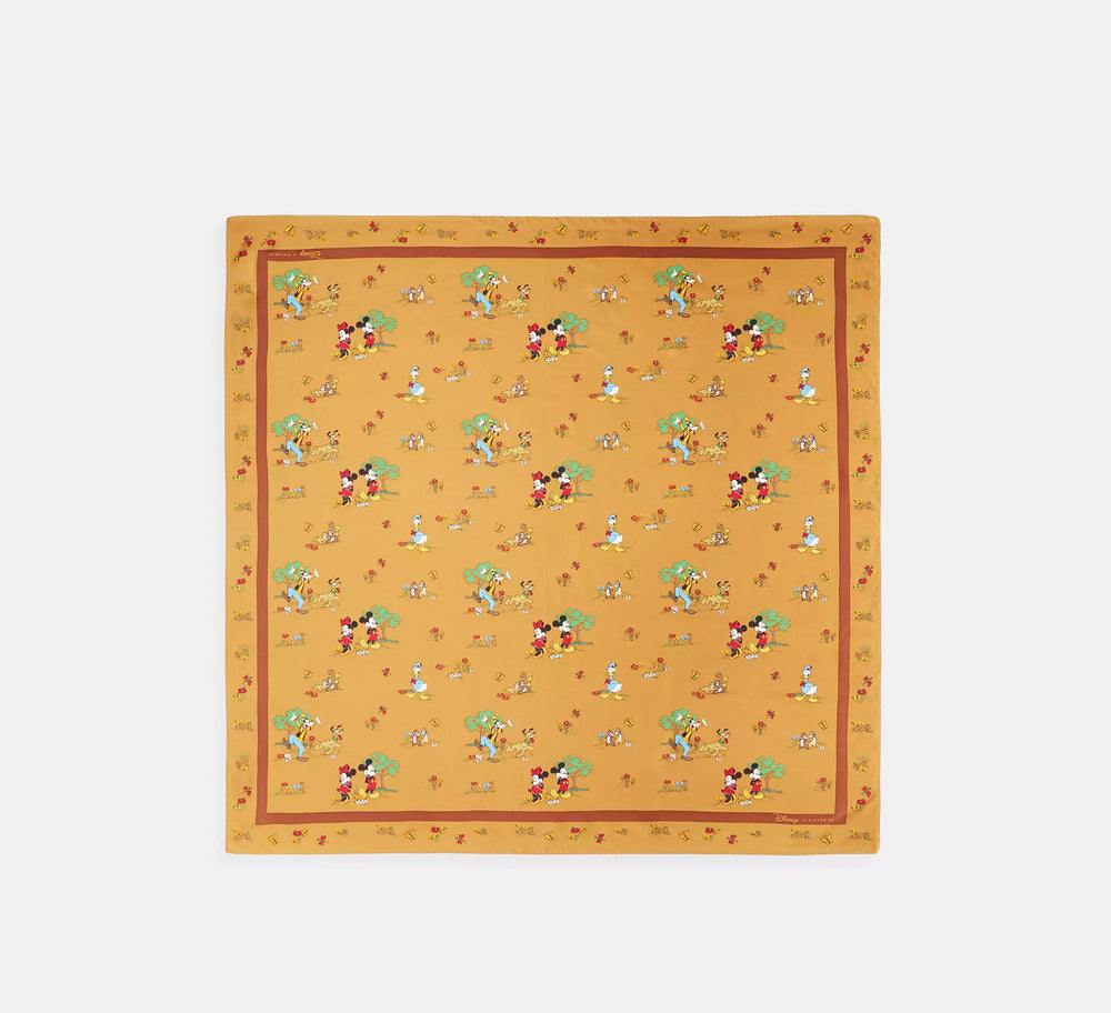 Coach Disney X Coach Silk Square Scarf With Mickey Mouse And Friends SEZON - Honey Brown