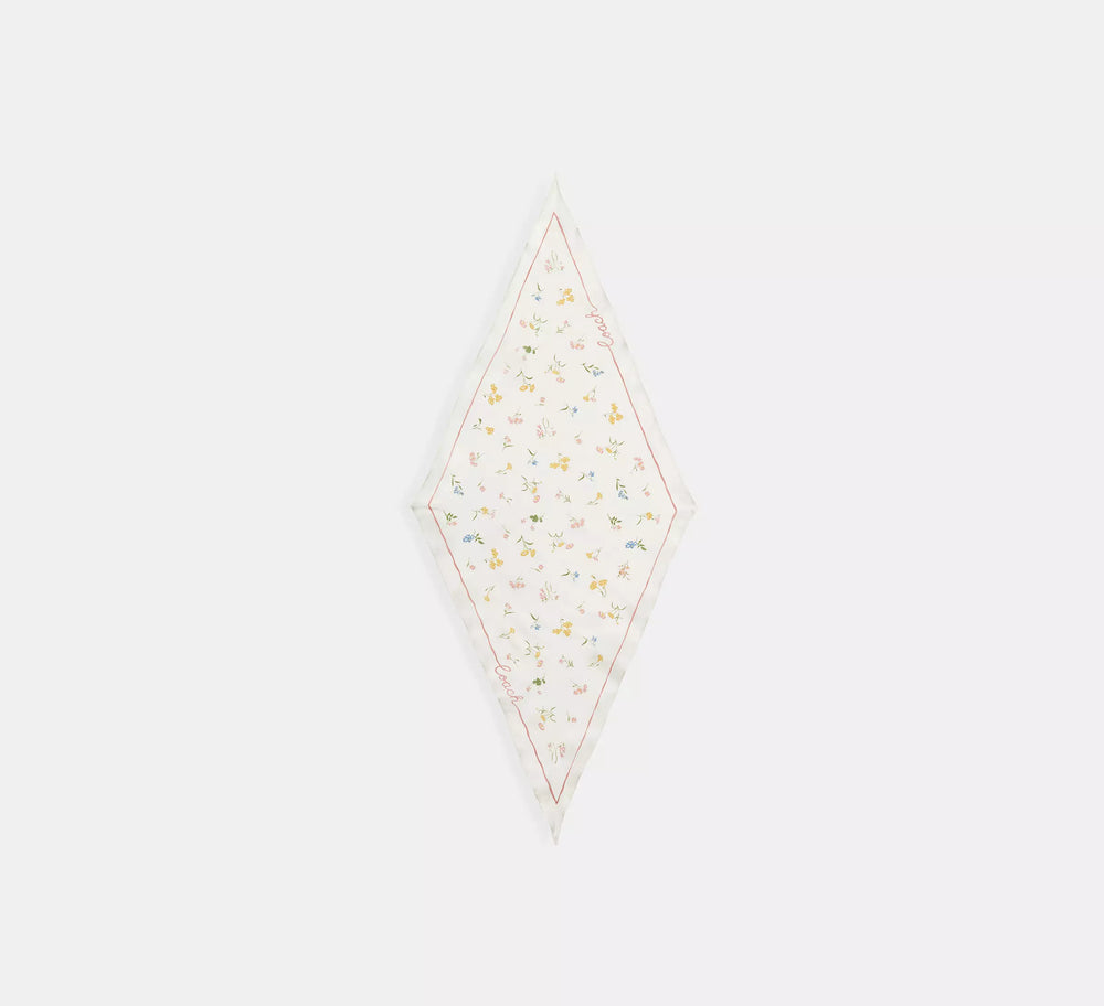 Coach Tossed Floral Print Silk Diamond Scarf - Chalk
