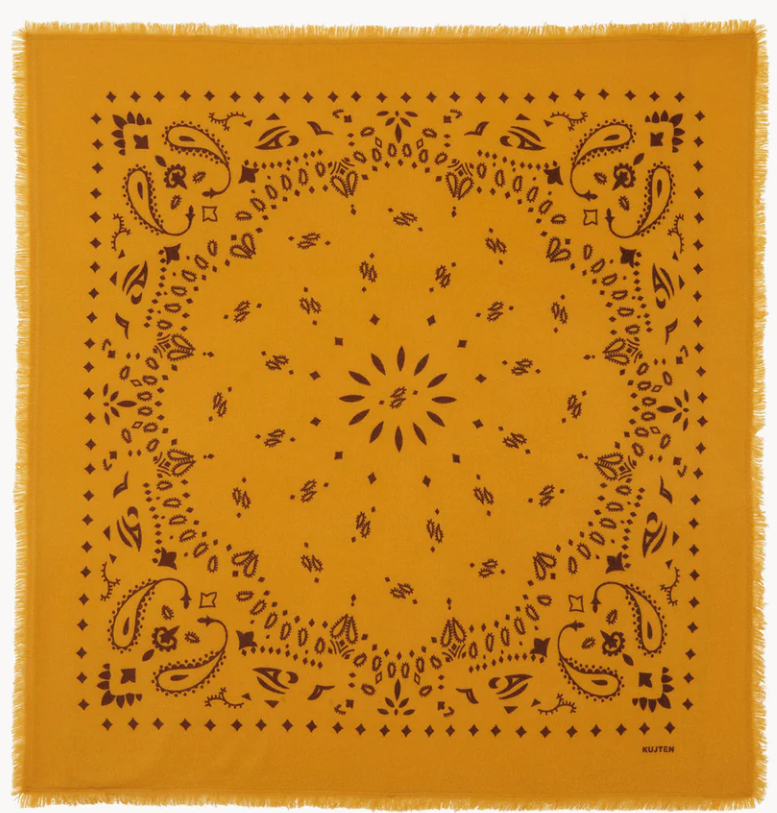 Kujten- Bandana Hachiko Large Printed Cashmere Bandana, -Saffron yellow