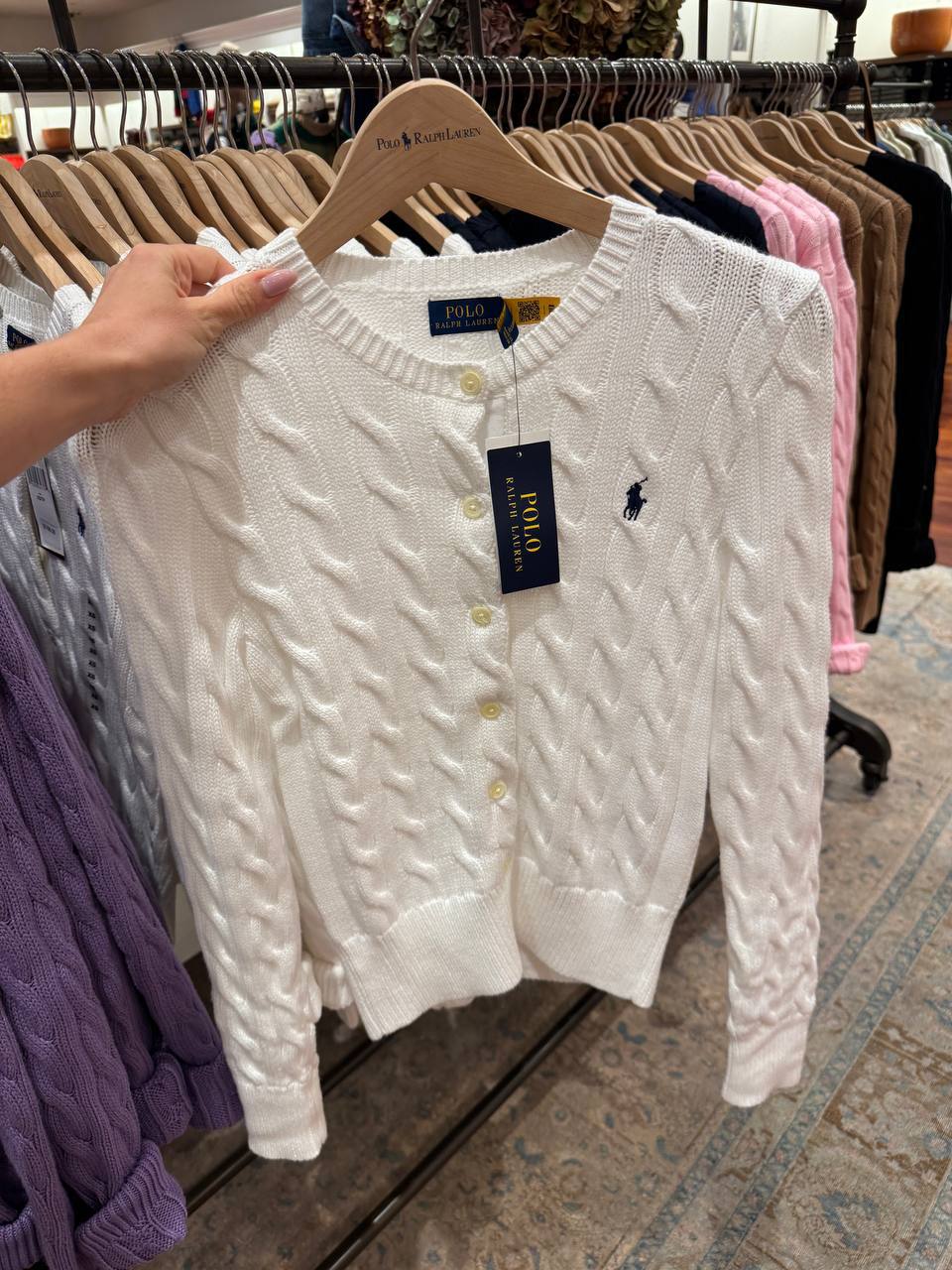 Ralph Lauren Cable-Knit Cotton Crewneck Cardigan- White