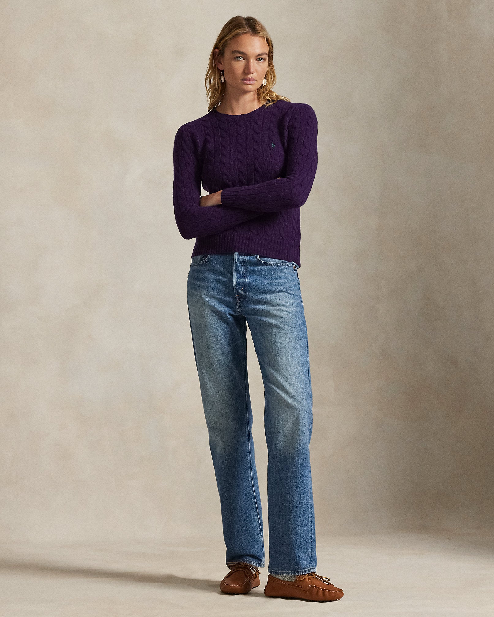 Ralph Lauren Cable-Knit Wool-Cashmere Sweater - Midnight Purple