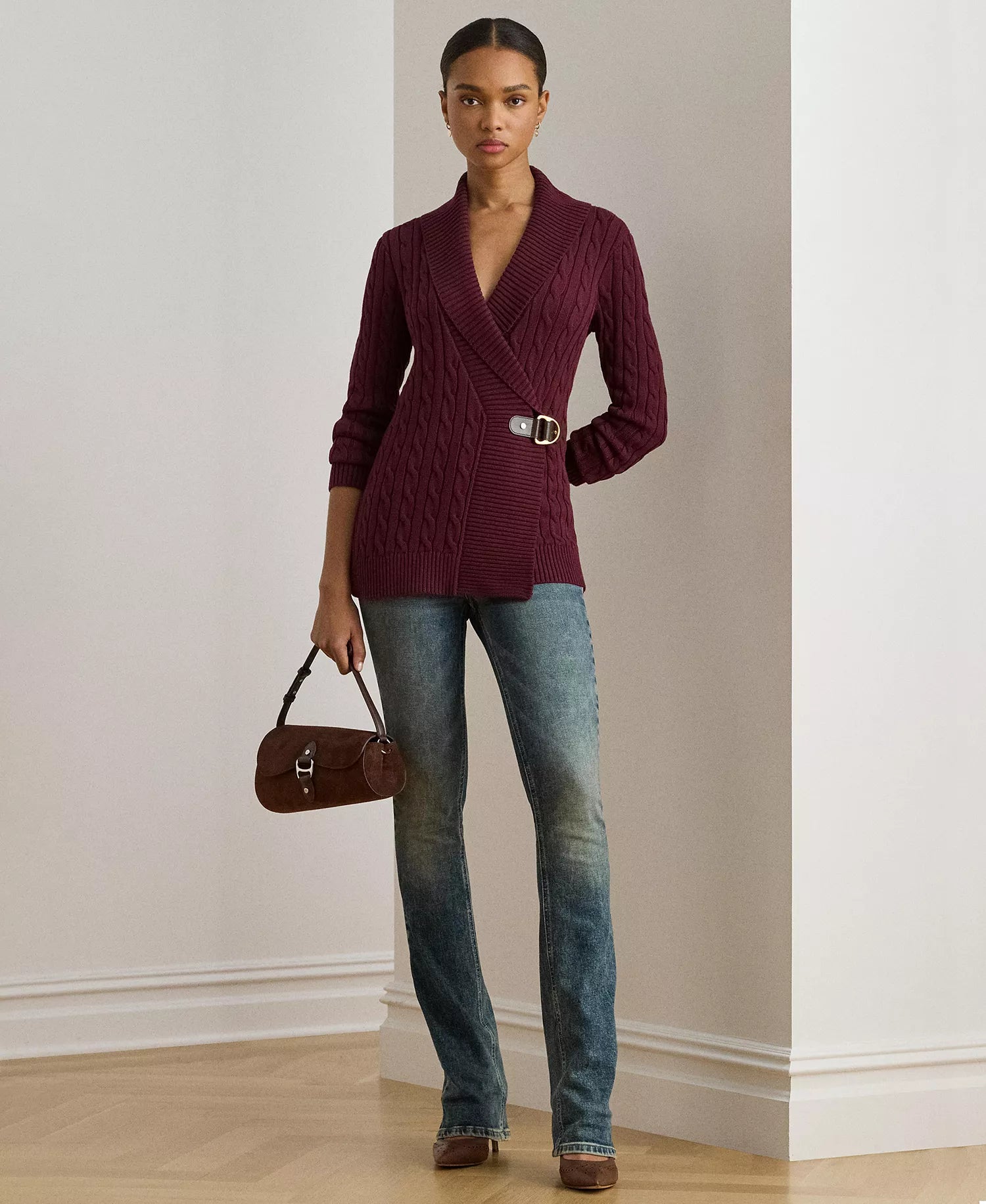 Ralph Lauren Women's Buckled Cotton Sweater-Dark Garnet