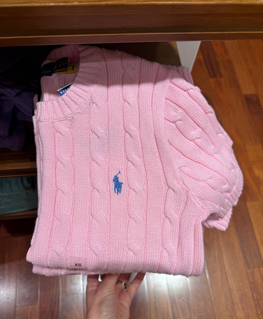 Ralph Lauren Cable-Knit Cotton Short-Sleeve Sweater Pink OUTLET