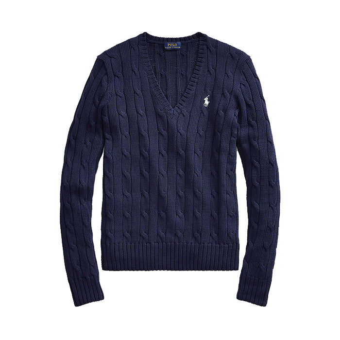 Ralph Lauren Cable-Knit Cotton V-Neck Sweater Navy- OUTLET