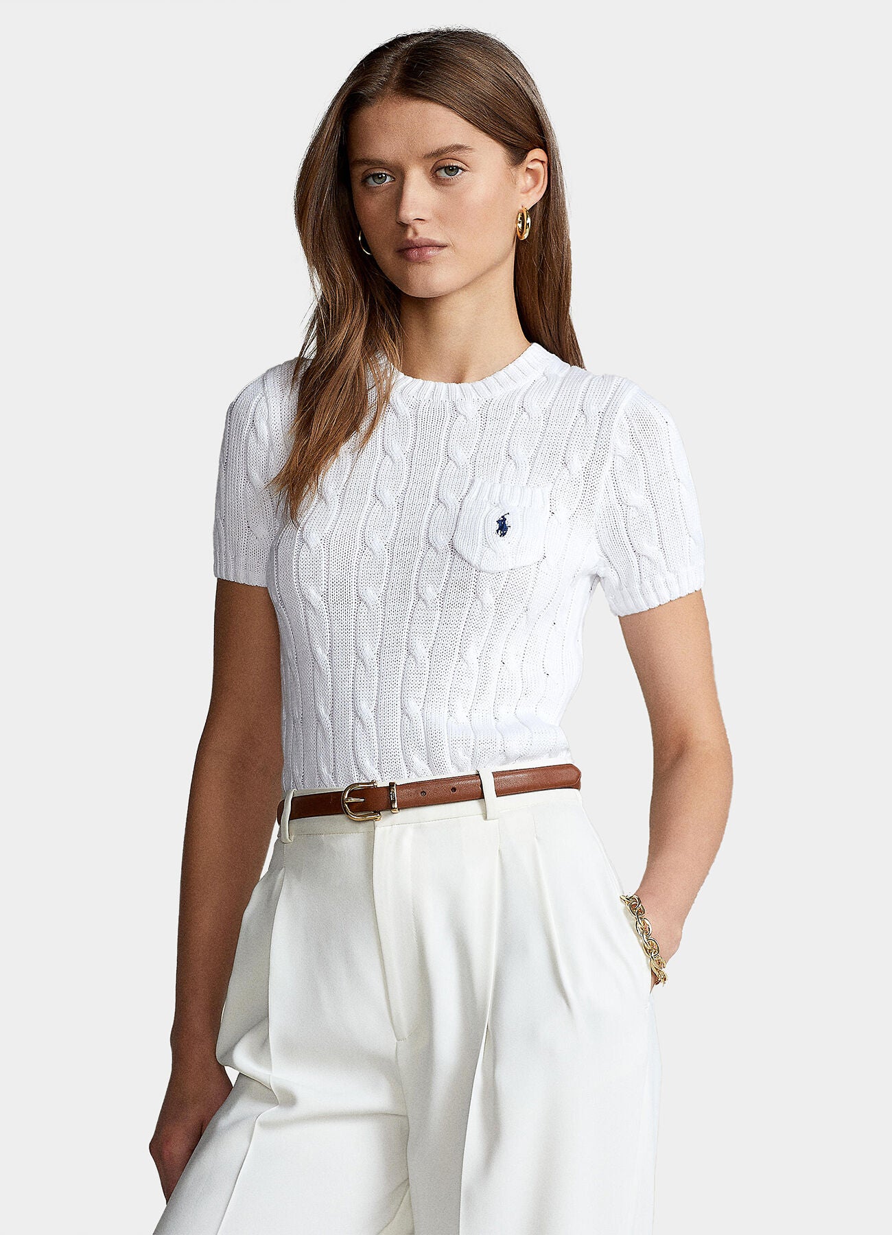 Ralph Lauren Cable-Knit Cotton Short-Sleeve Sweater White OUTLET