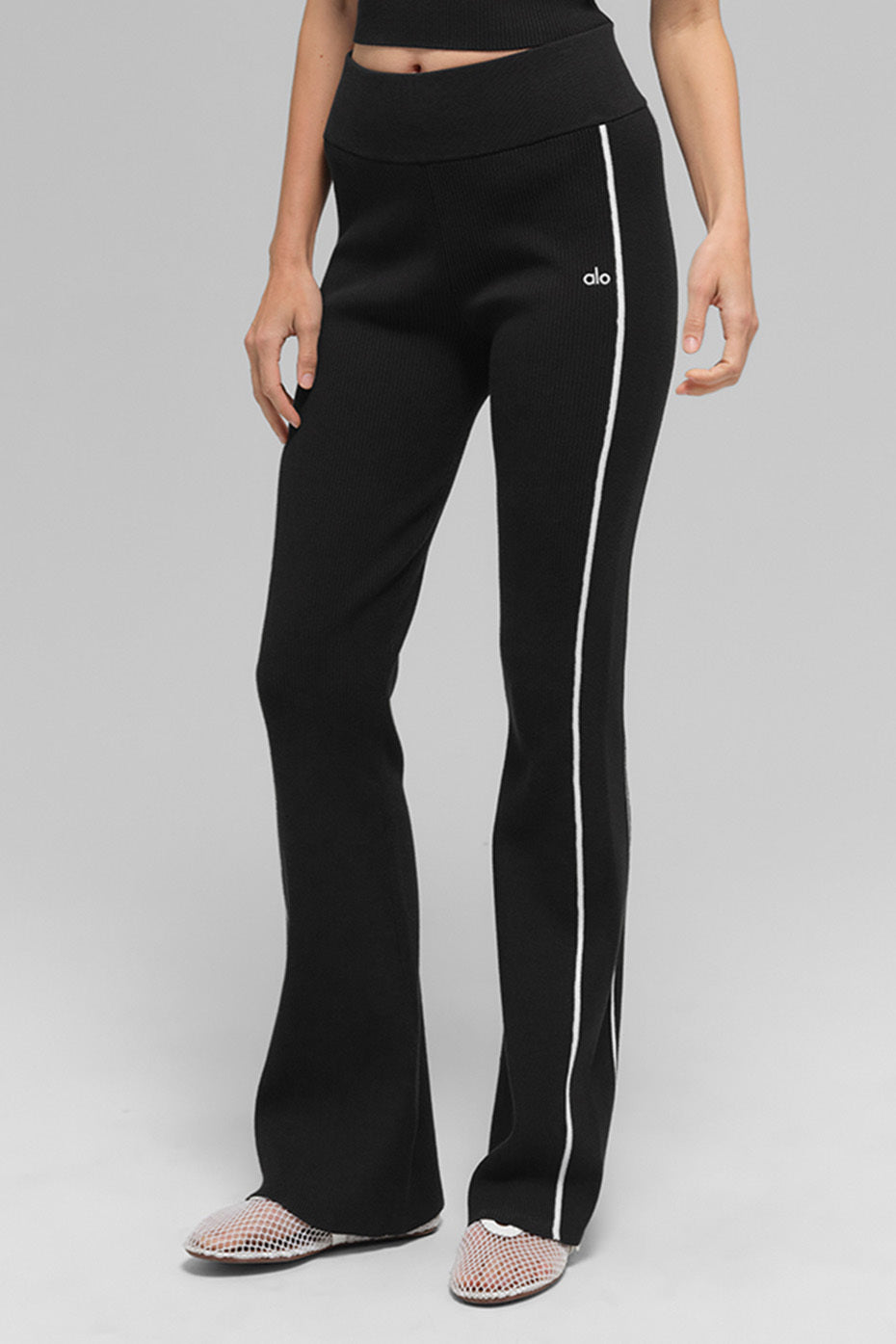 Alo Yoga Ribbed Sweater Knit Highline Flare Pant-Black/White