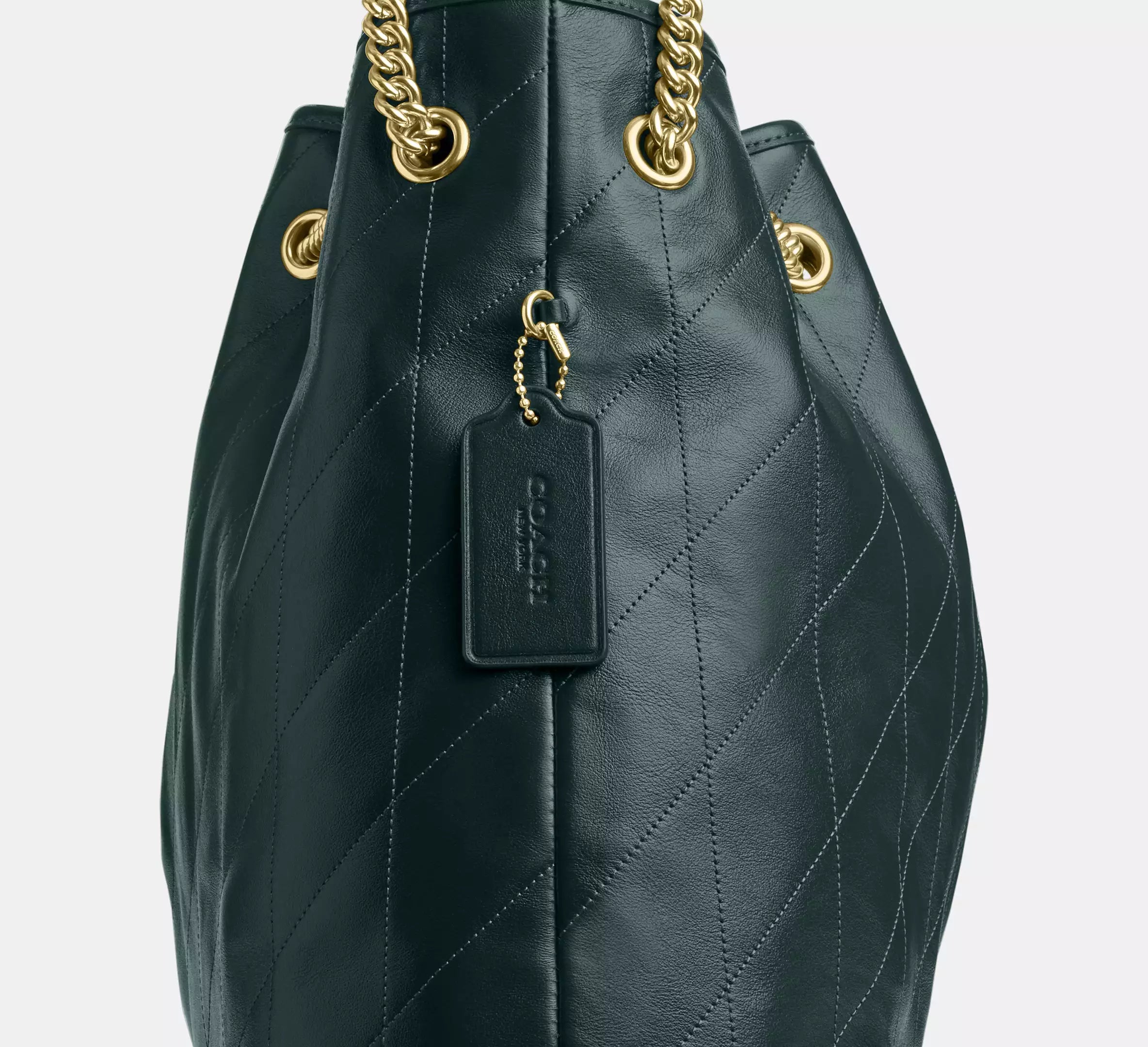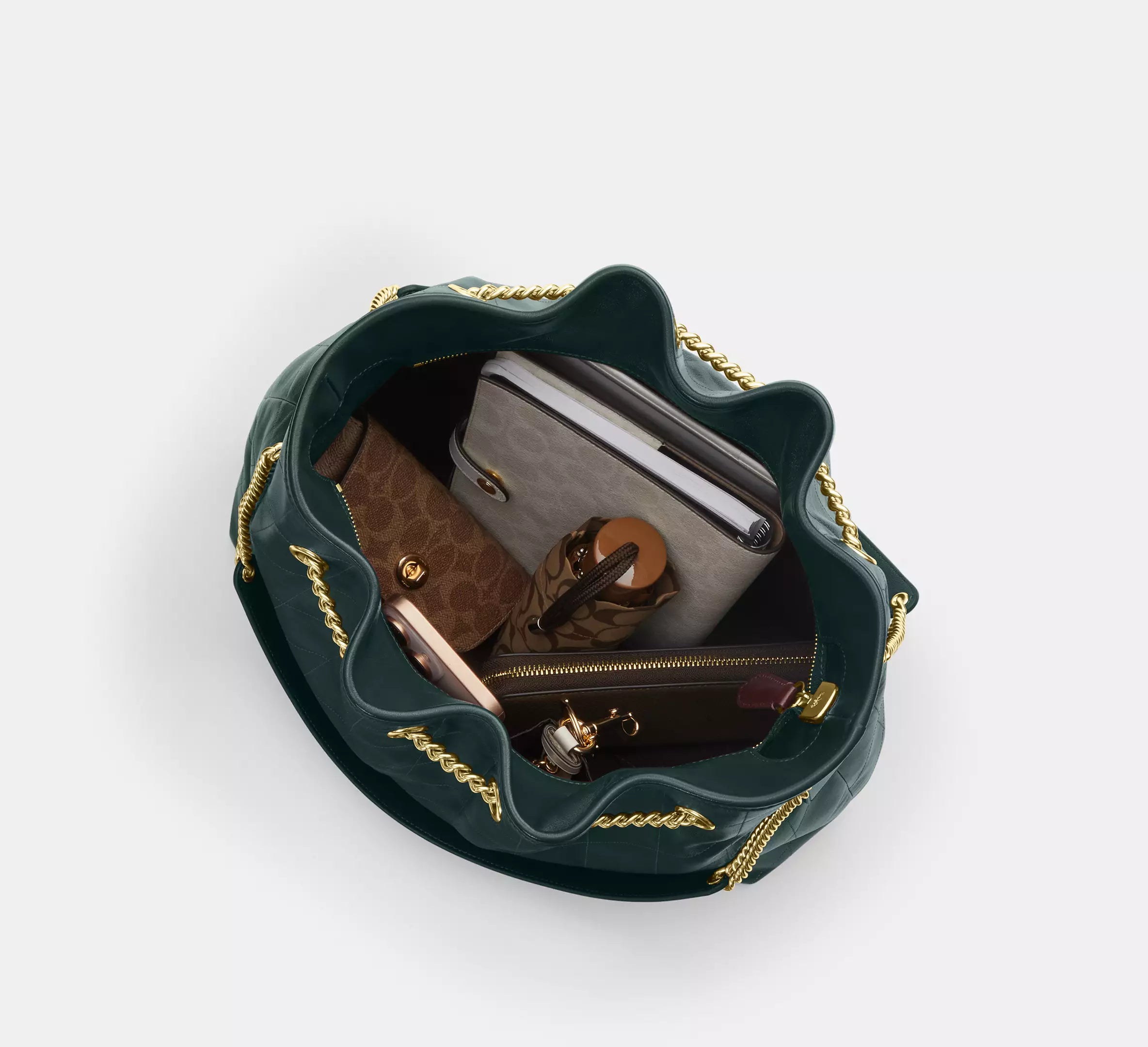 Coach Evelyn Large Shoulder Bag With Quilting - Gold/Dark Teal