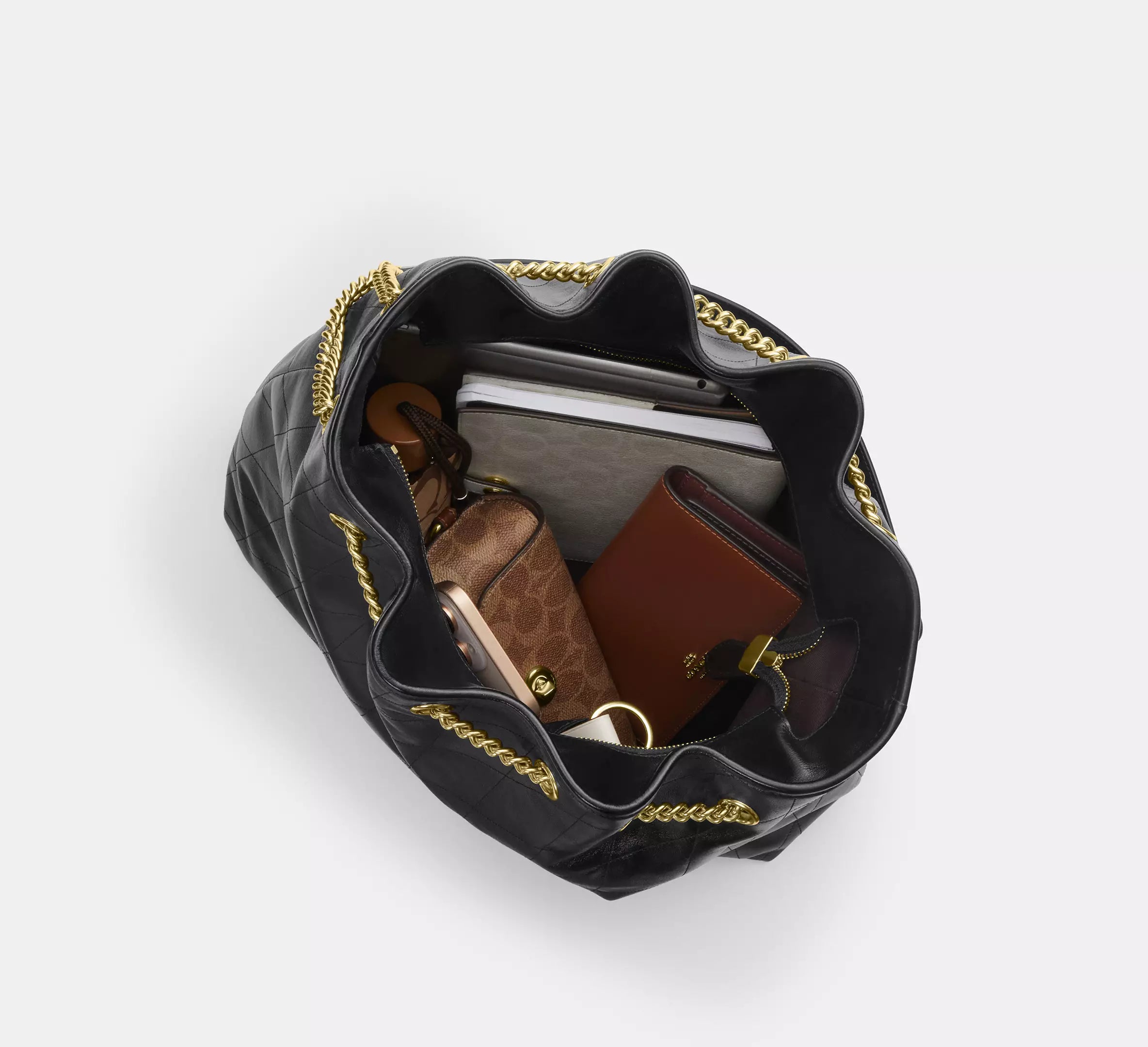Coach Evelyn Large Shoulder Bag With Quilting - Gold/Black