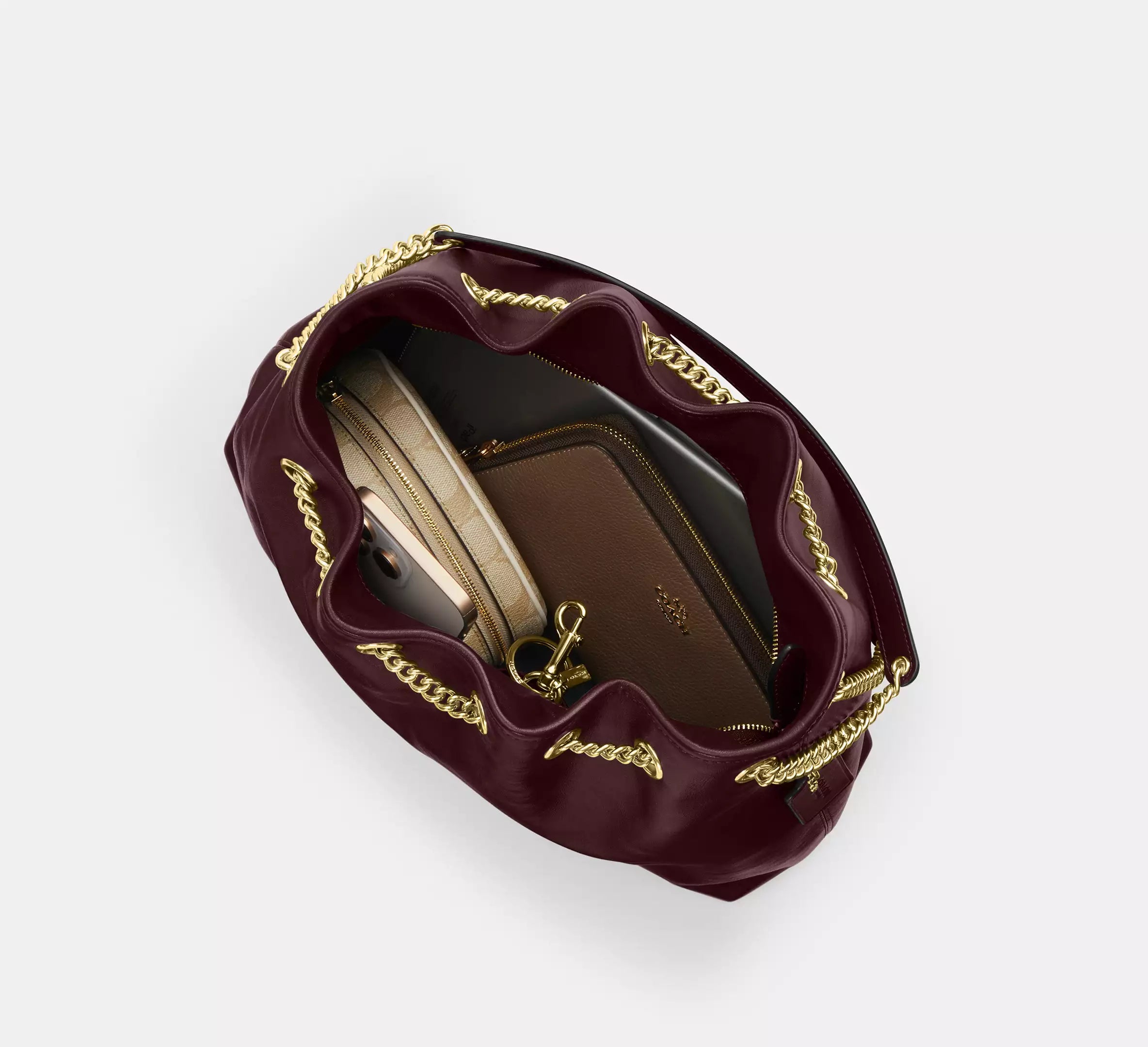 Coach Evelyn Shoulder Bag - Gold/Dark Wine