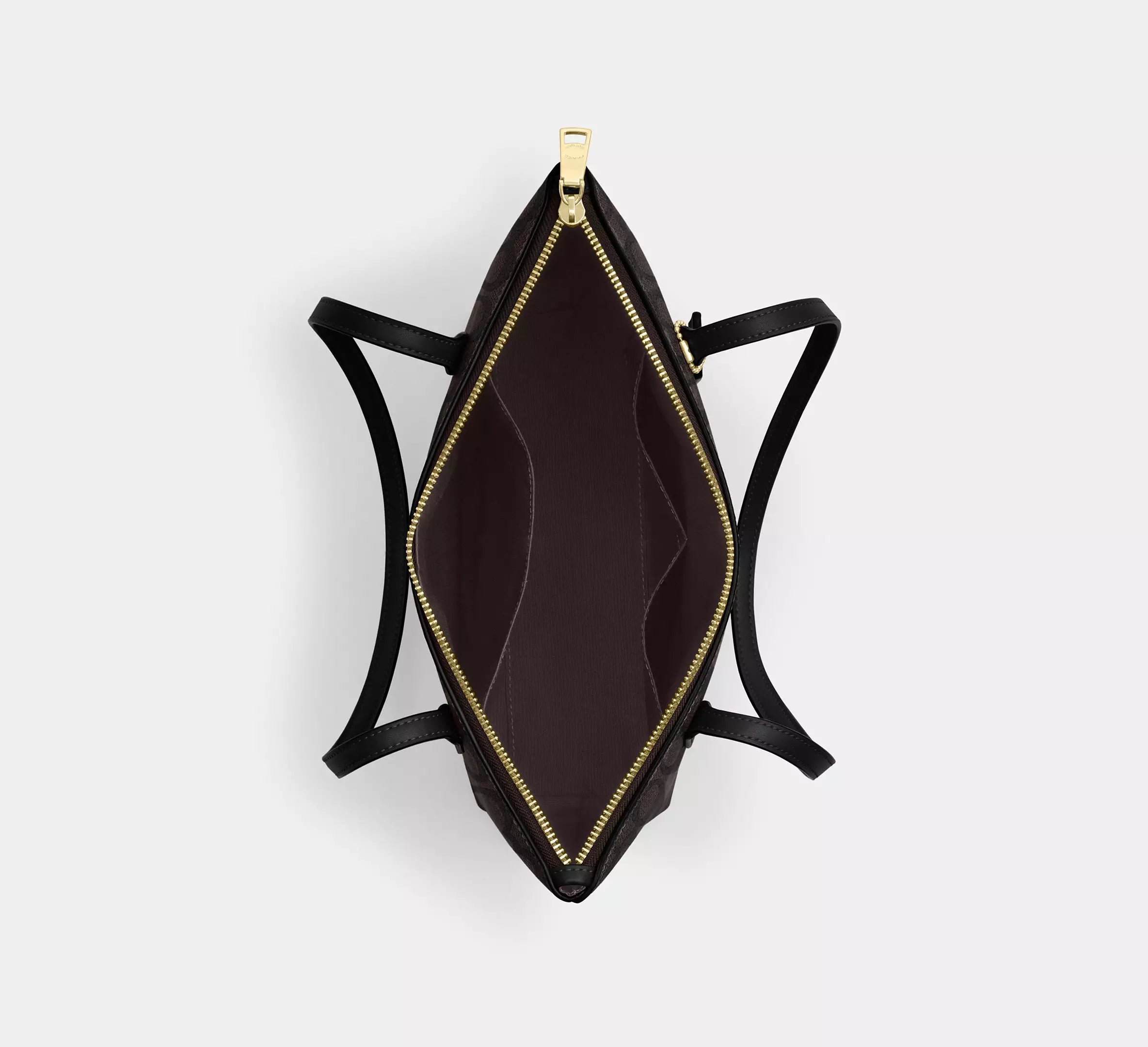 Coach Fiona Zip Tote Bag In Signature - Gold/Walnut/Black
