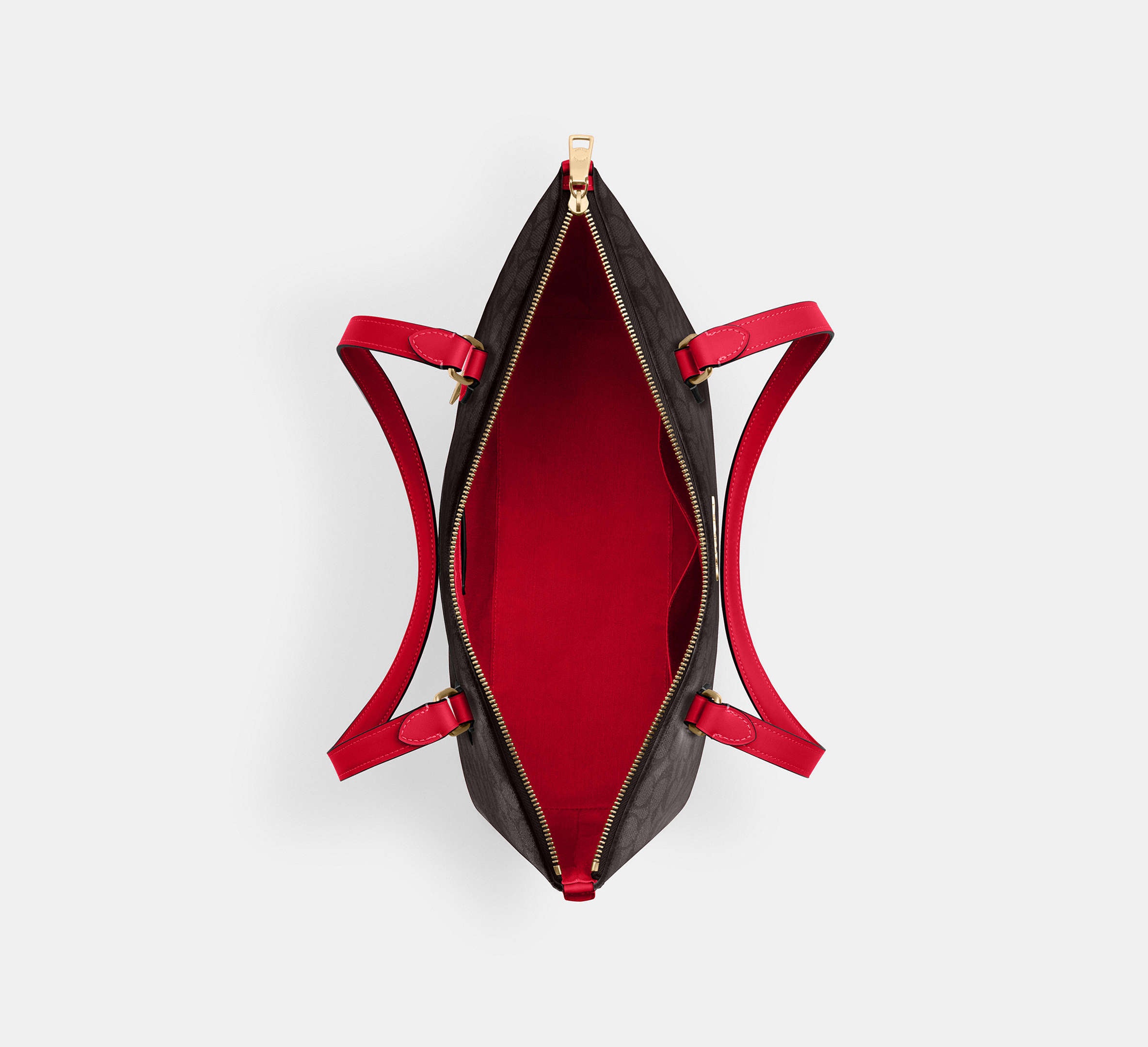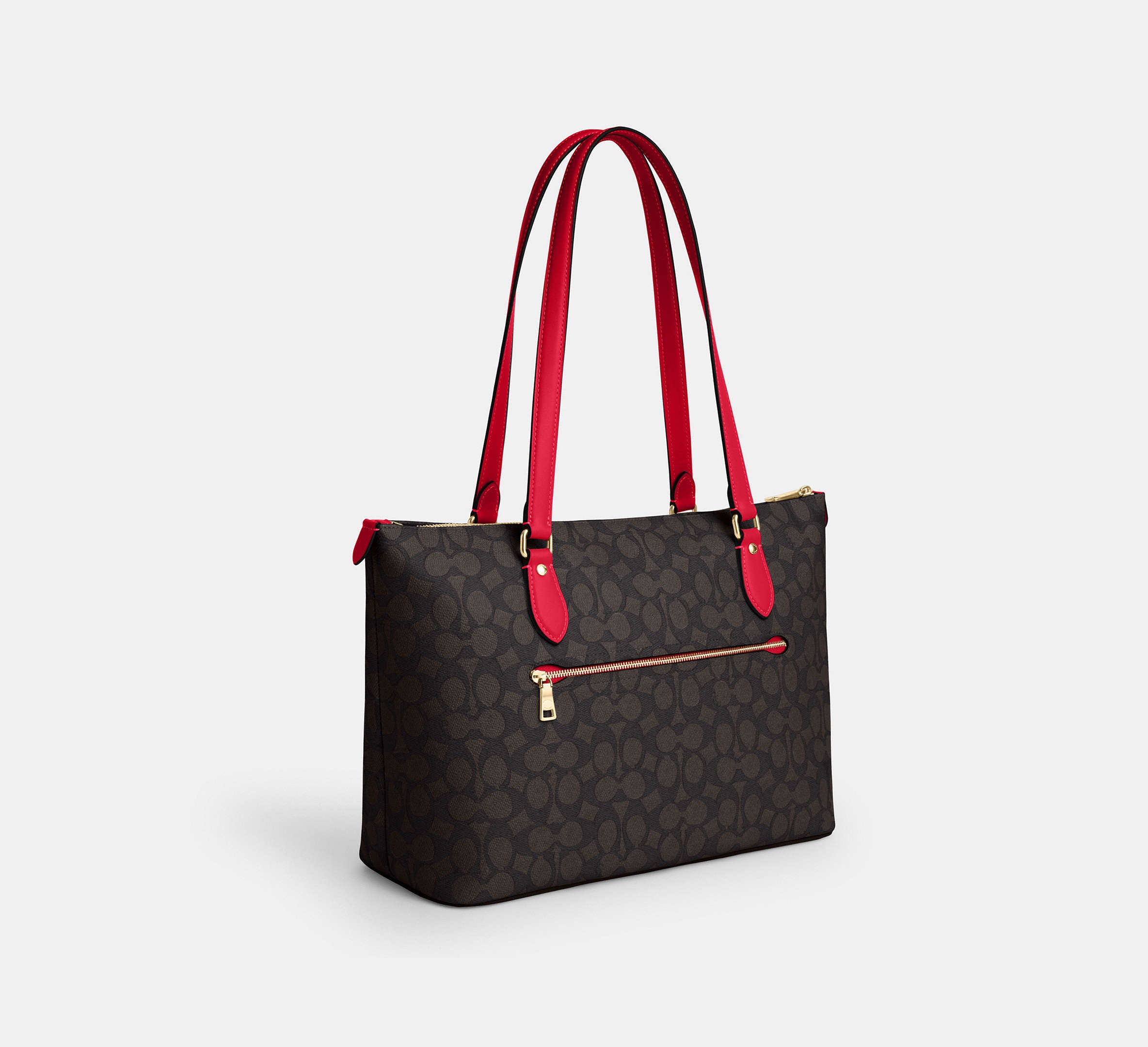 Coach Gallery Tote Bag Walnut Bold Red Hemen Teslimde