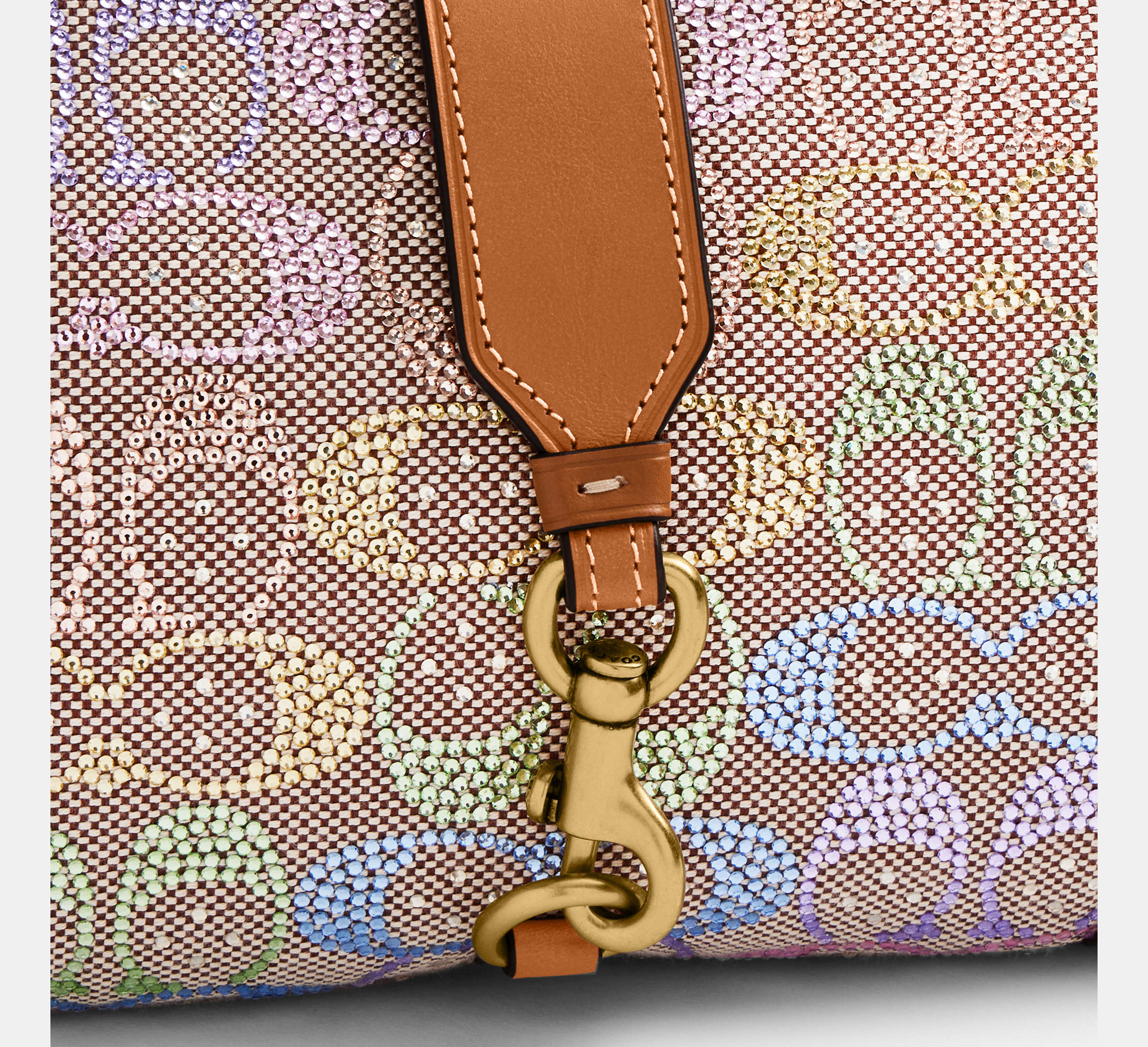Coach Hamptons Hobo Bag In Crystal Signature Jacquard - Brass/Rainbow Multi