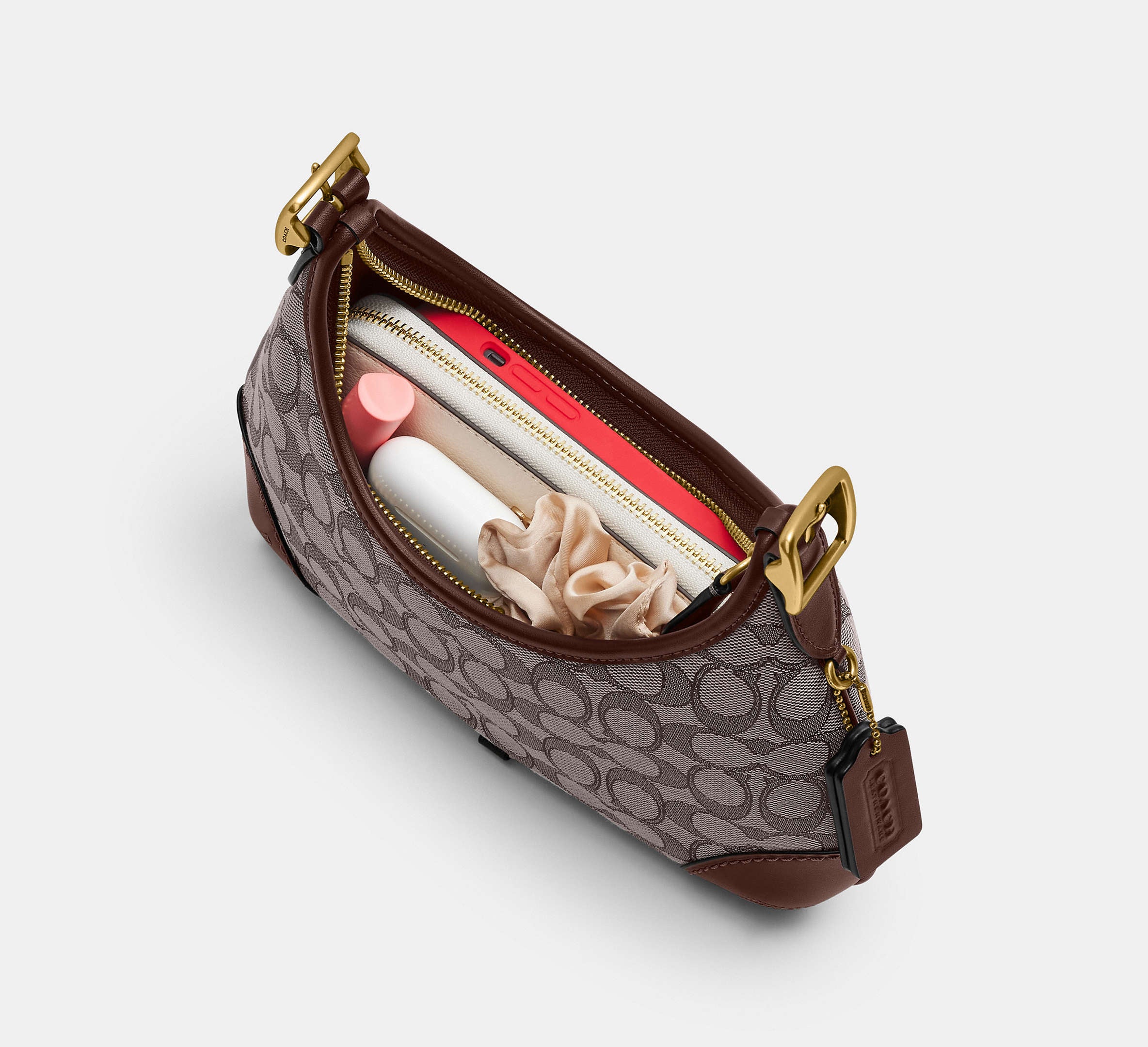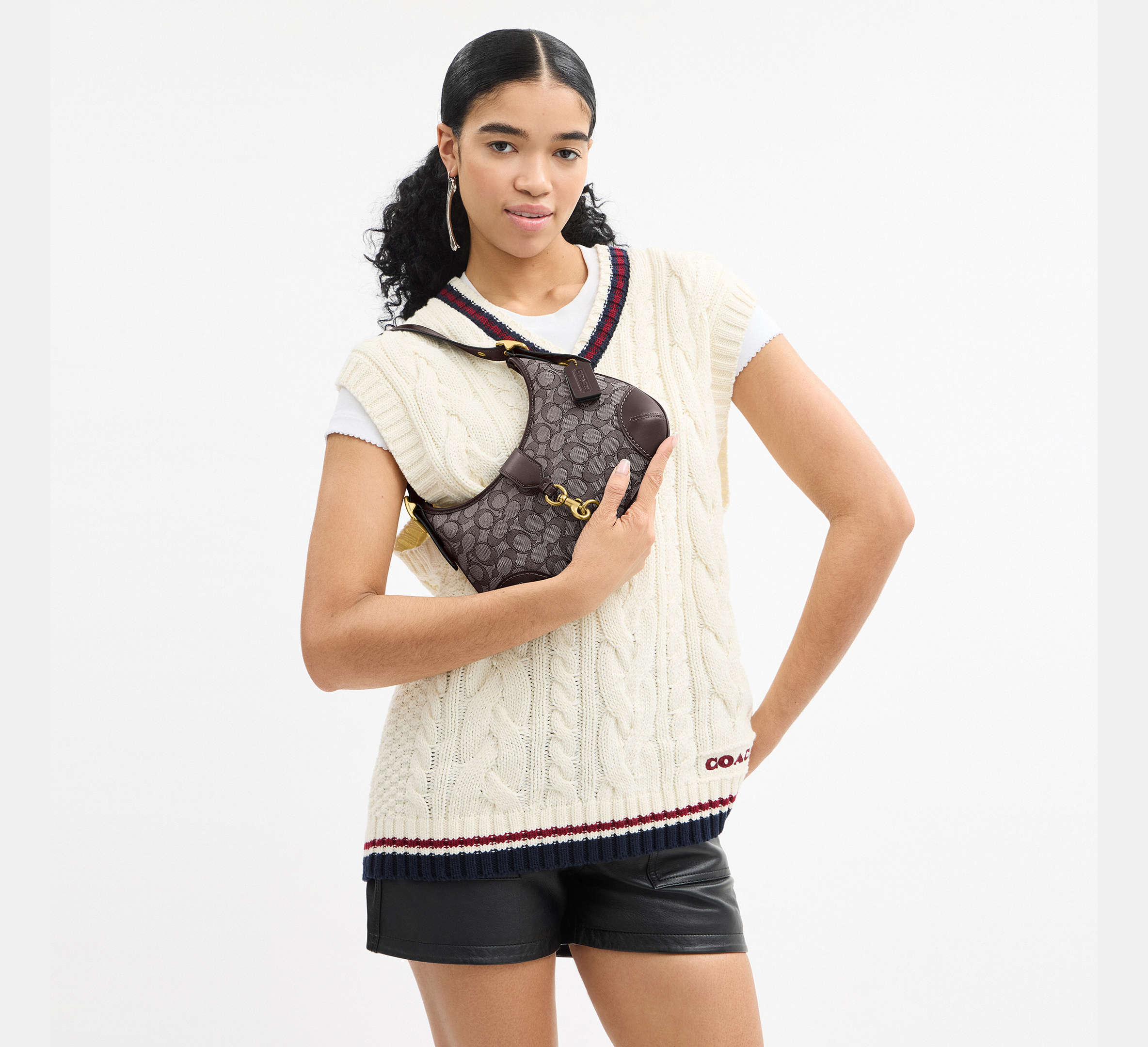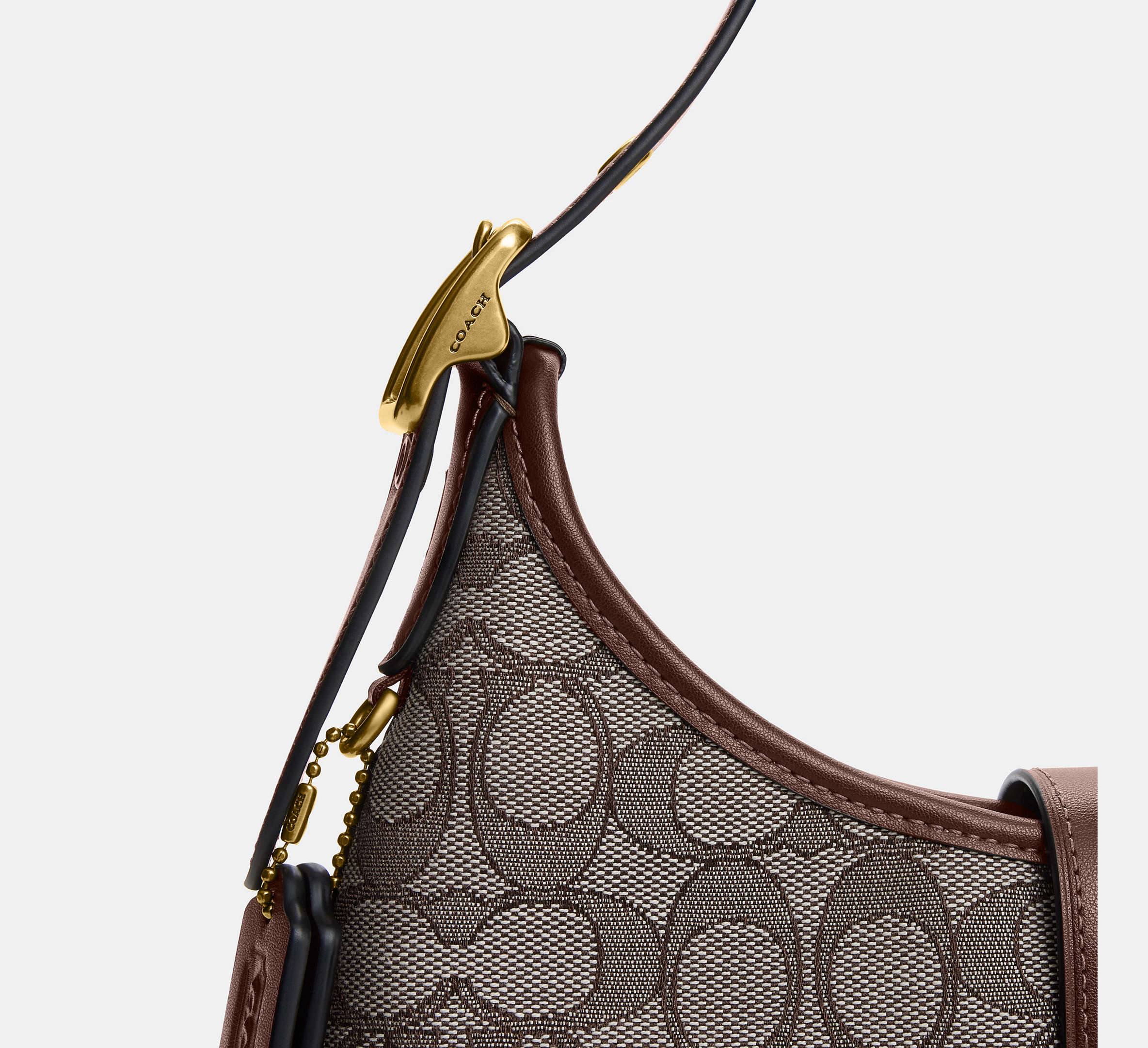 Coach Hamptons Hobo Bag In Signature Jacquard - Brass/Oak Maple