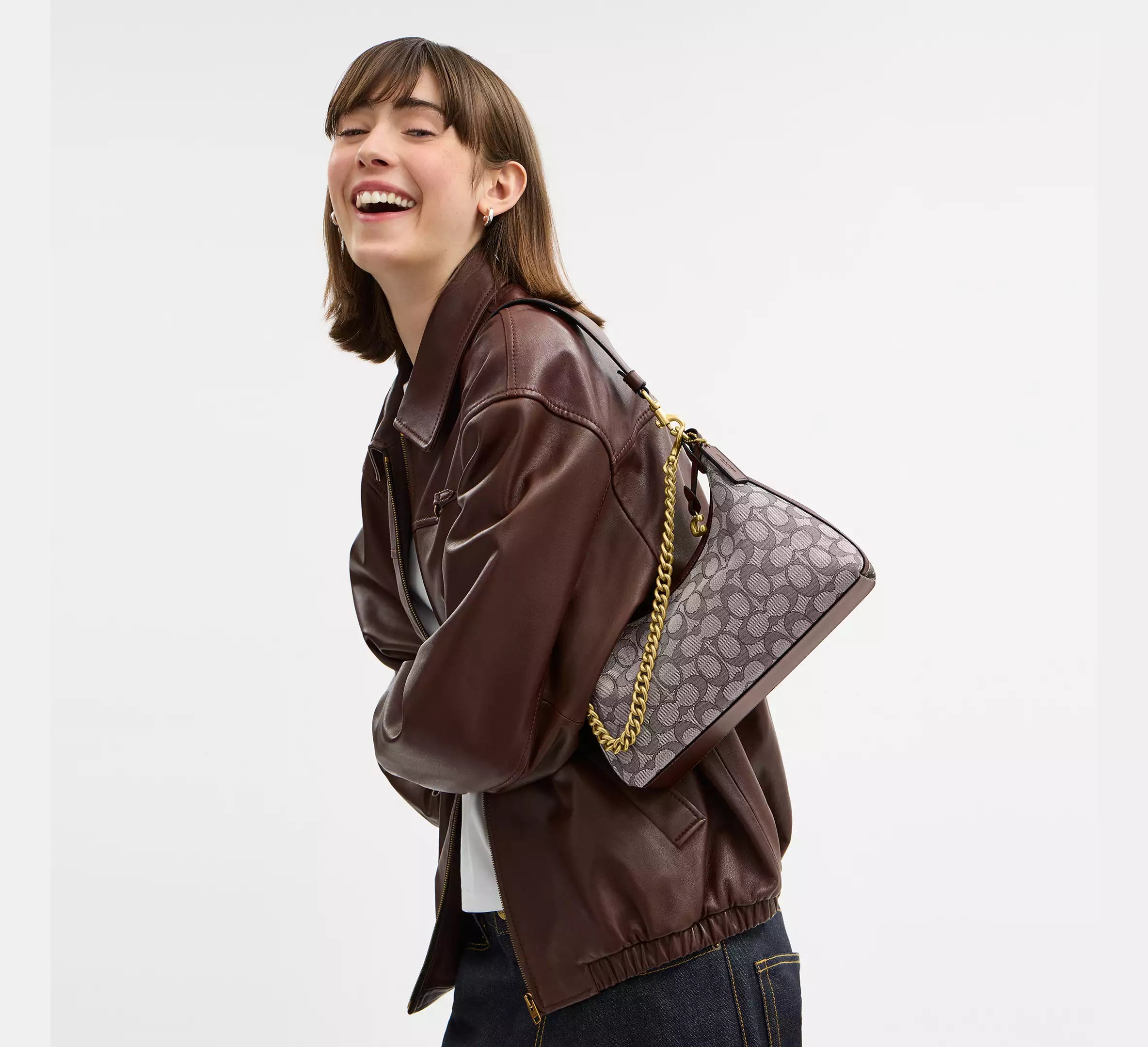 Coach Juliet Shoulder Bag 25 In Signature Jacquard - Brass/Oak Maple