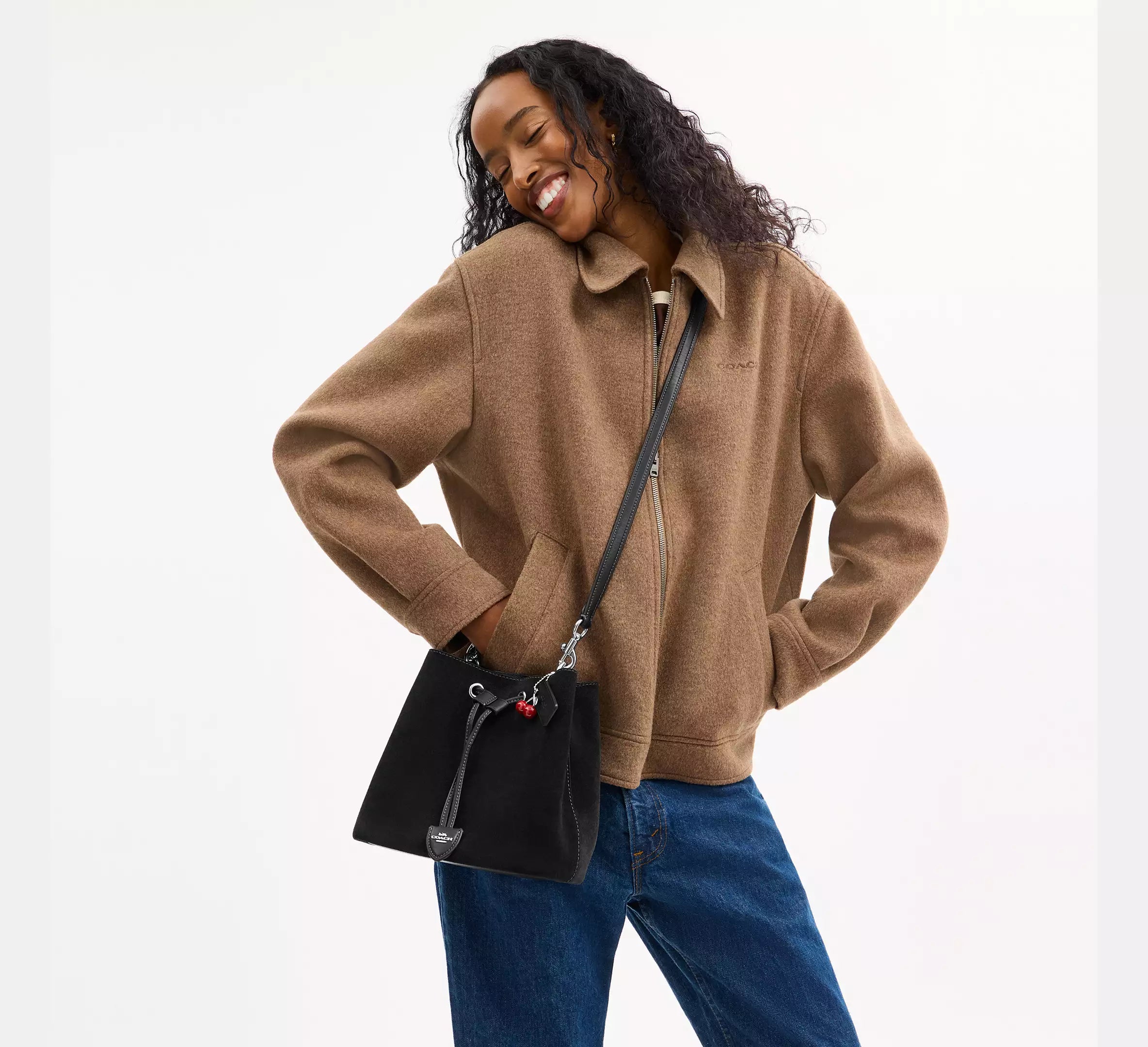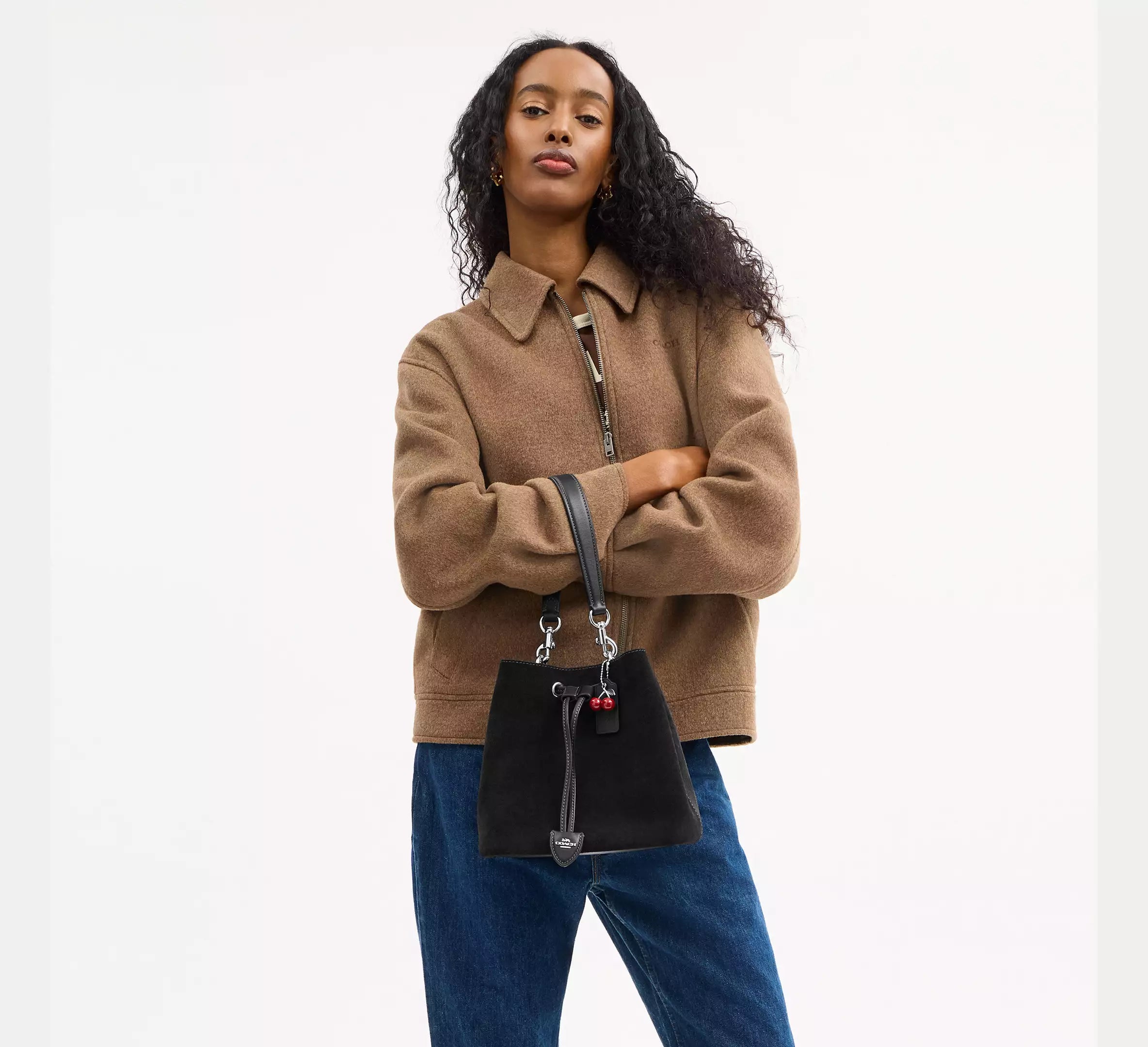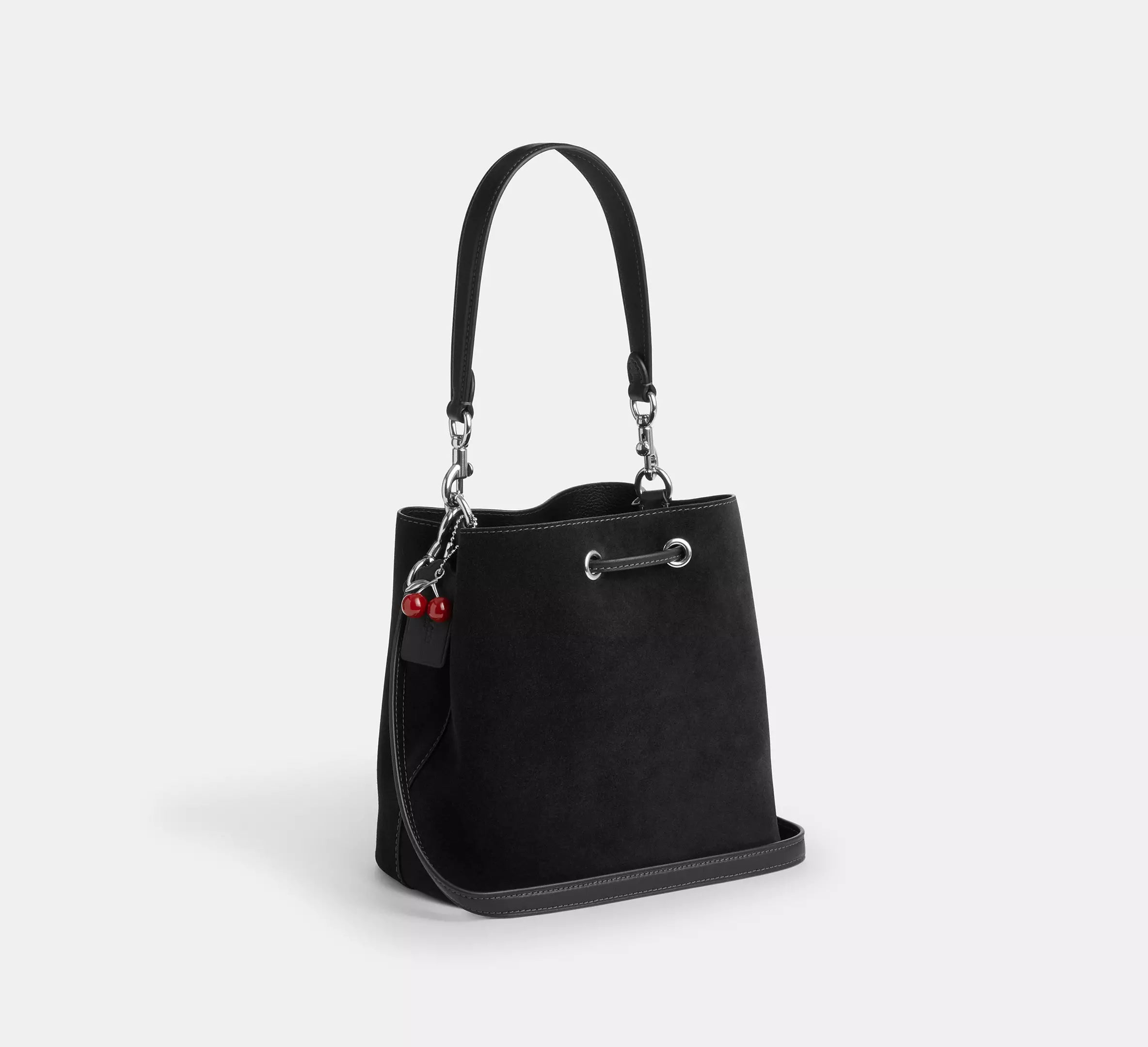 Coach Rowan Bucket Bag With Cherry Charm - Silver