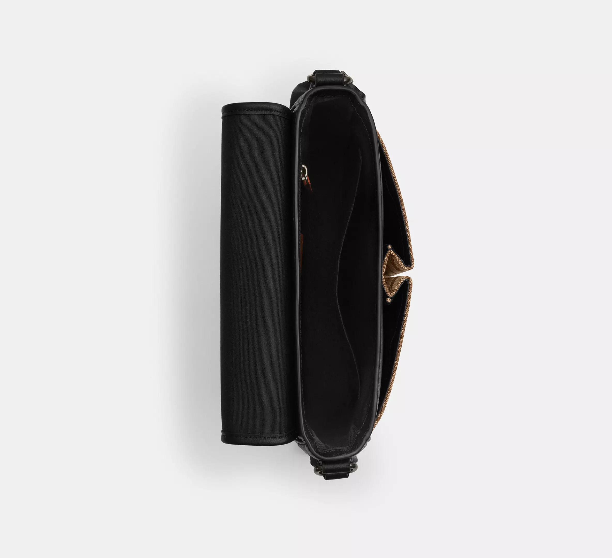 Kenar detayları hariç, bu Coach ürünü organik pamuk ve geri dönüştürülmüş polyester karışımından üretilmiş logolu jakar kumaştan üretilmiştir.