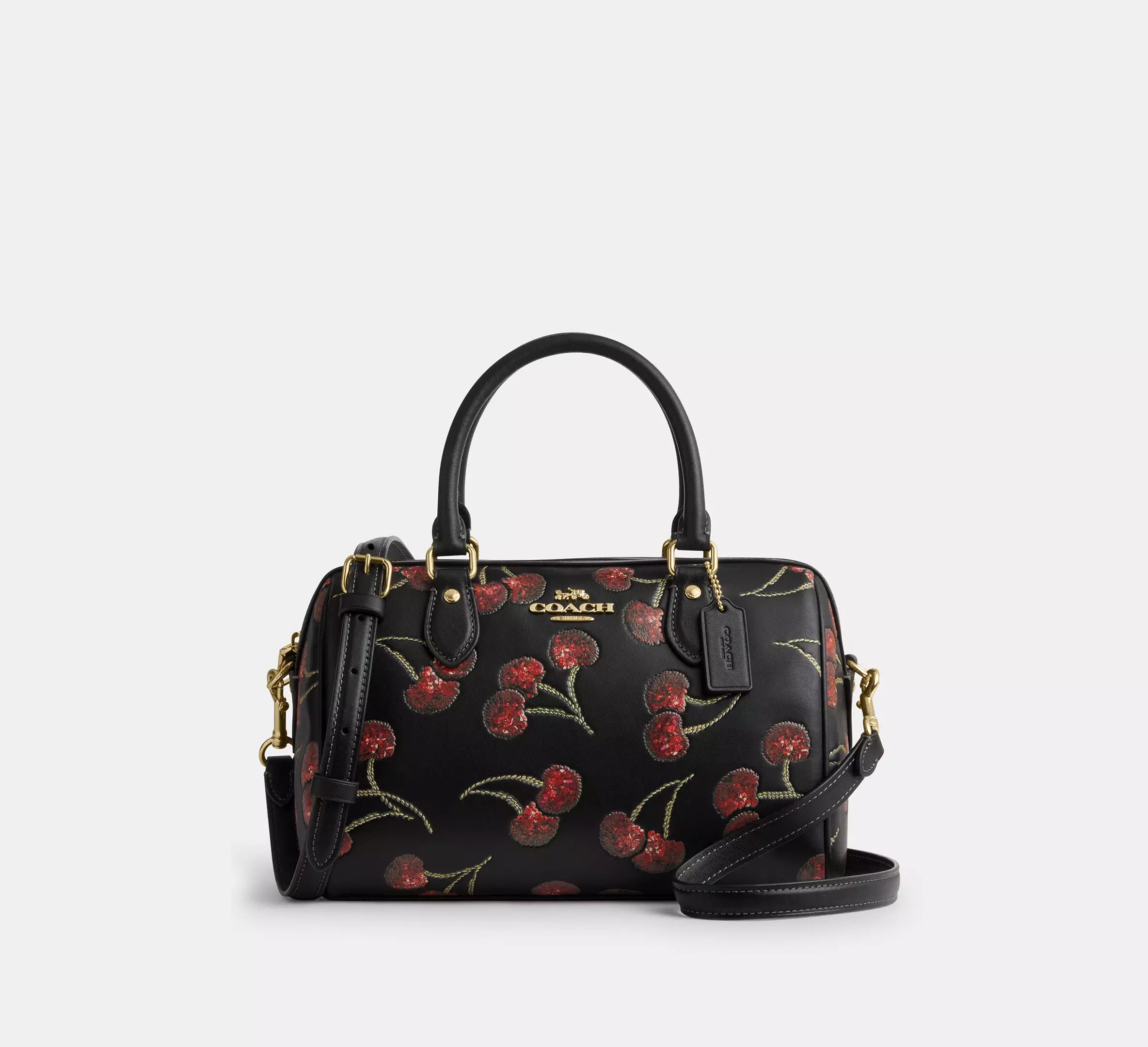 Coach Rowan Satchel Bag With Cherry Print - Gold/Black Multi